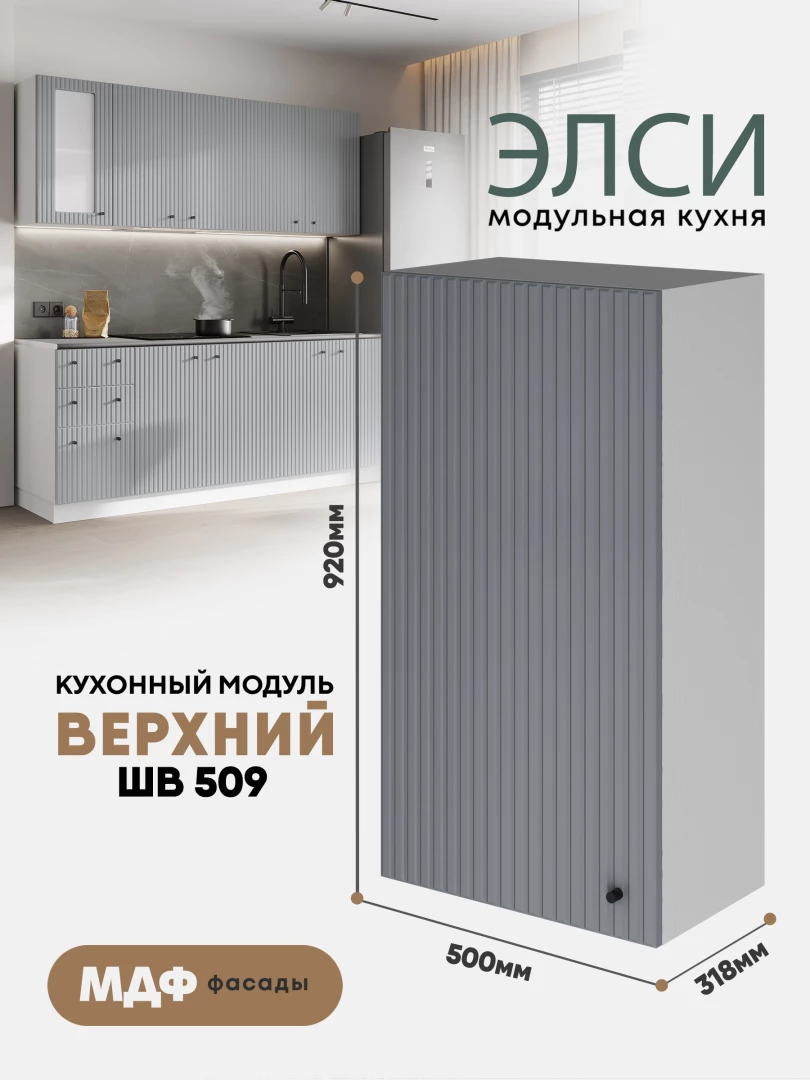 Рельефные фасады модульной кухни «Элси» называю микротрендом, у которого есть все шансы задержаться в моде не на один сезон. Дизайн фасадов с вертикальными полосками меняет восприятие пространства – визуально раздвигает, добавляет воздушности.
