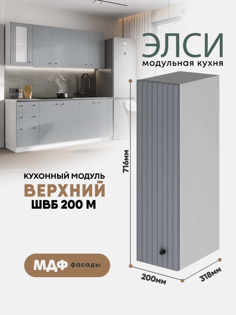 Рельефные фасады модульной кухни «Элси» называю микротрендом, у которого есть все шансы задержаться в моде не на один сезон. Дизайн фасадов с вертикальными полосками меняет восприятие пространства – визуально раздвигает, добавляет воздушности.