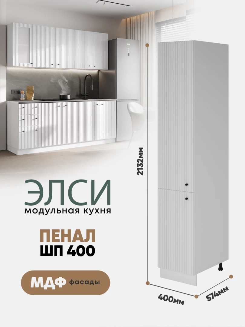 Шкаф - пенал для кухни "Элси" ШП 400 Белый