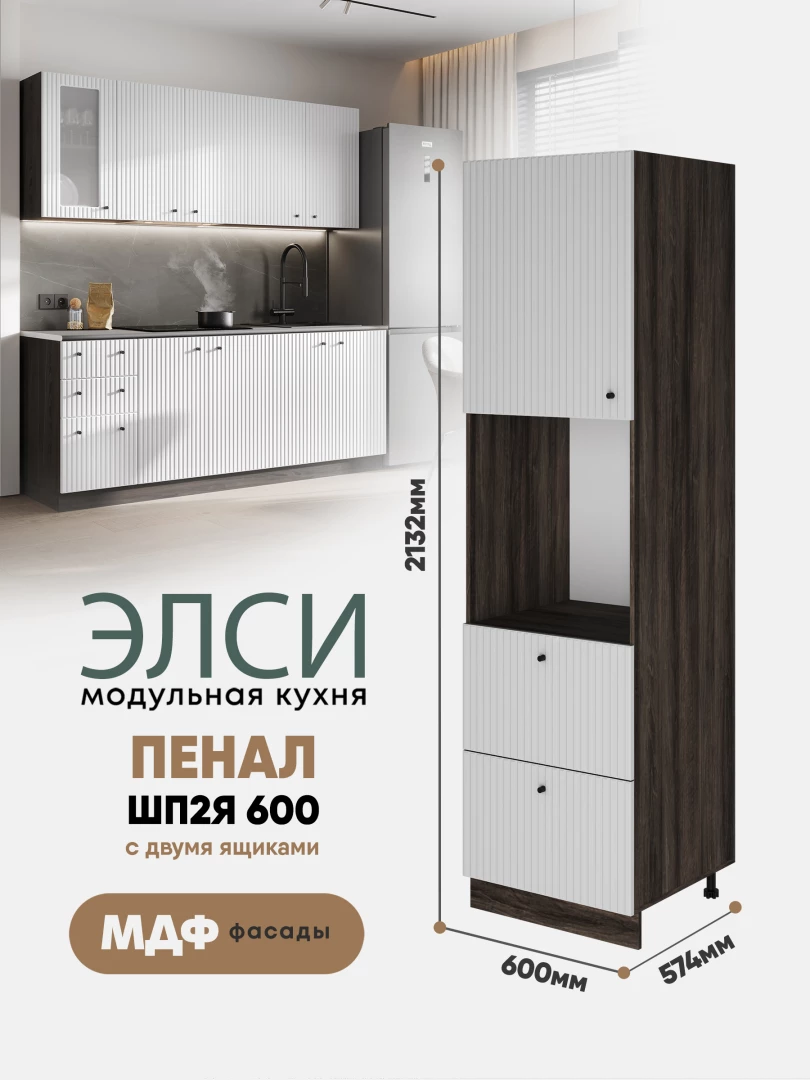 Шкаф - пенал для кухни "Элси" ШП2Я 600 Ликата