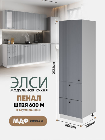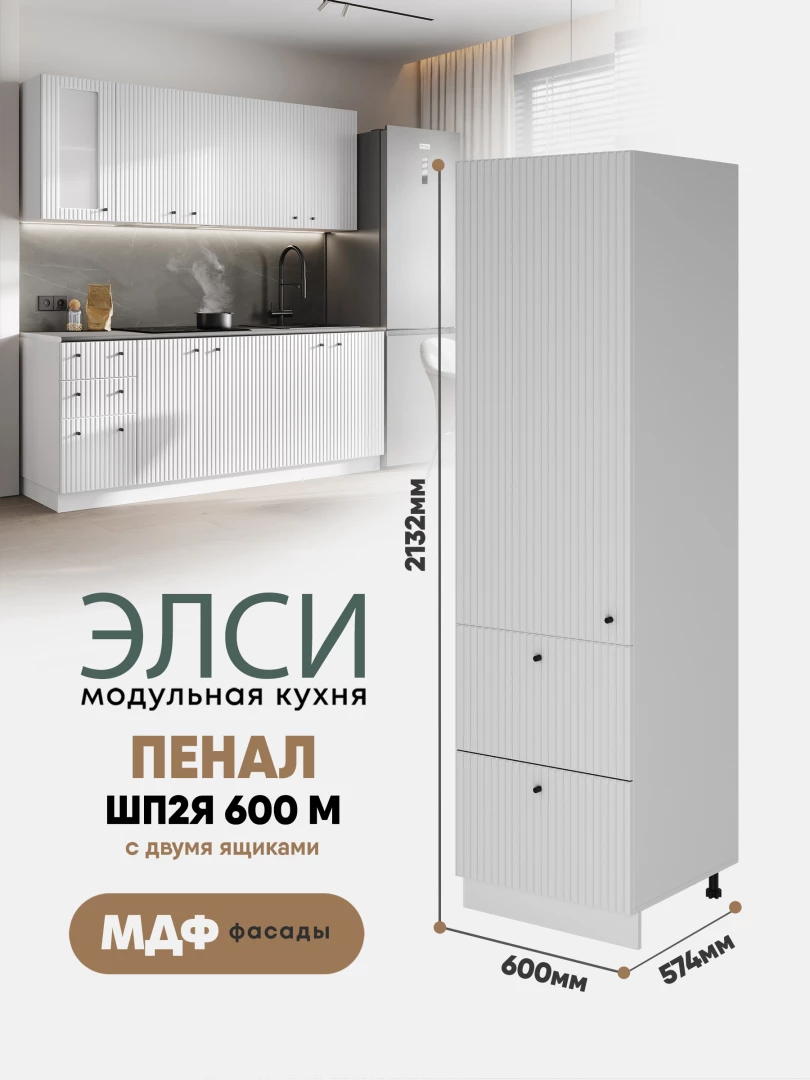 Шкаф - пенал для кухни "Элси" ШП2Я 600М Белый