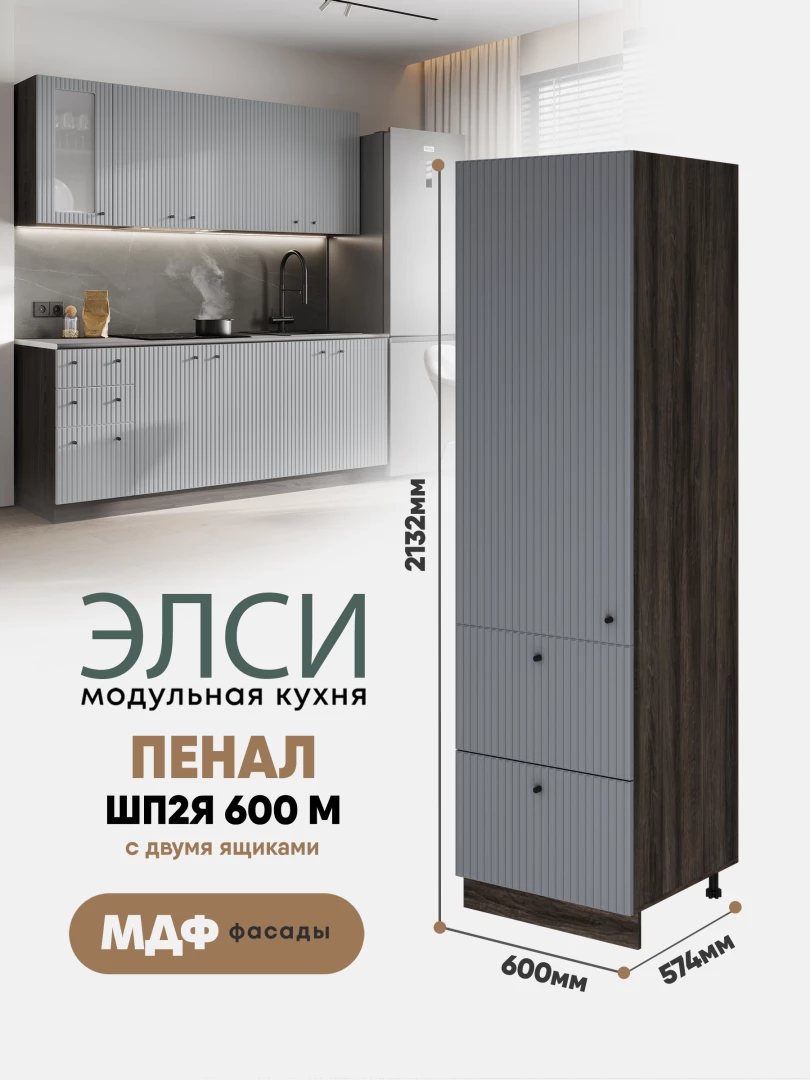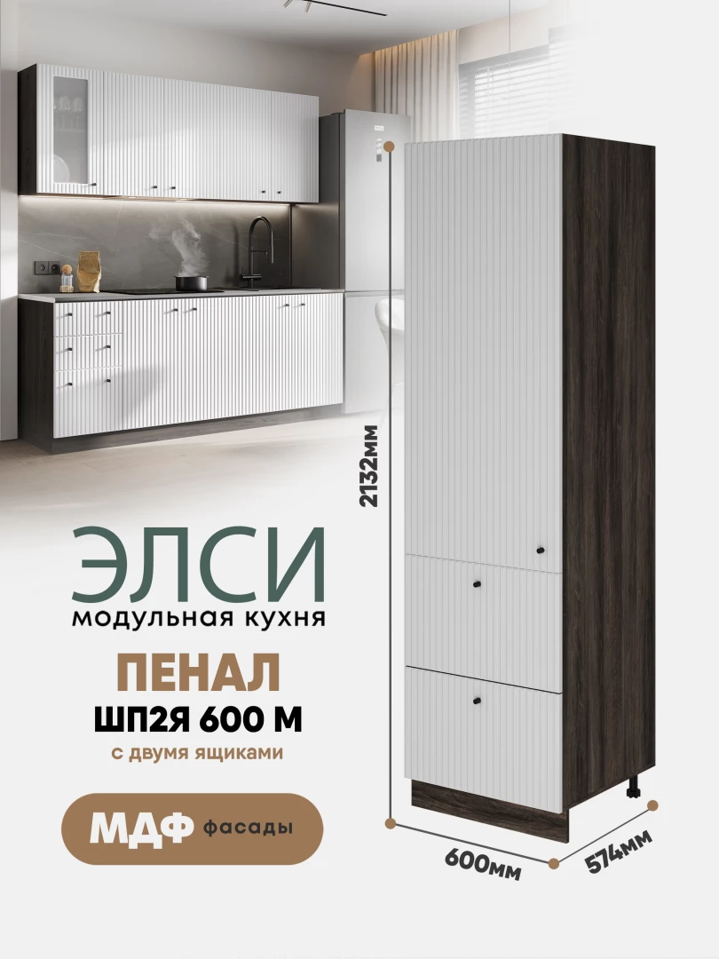 Шкаф - пенал для кухни "Элси" ШП2Я 600М Ликата