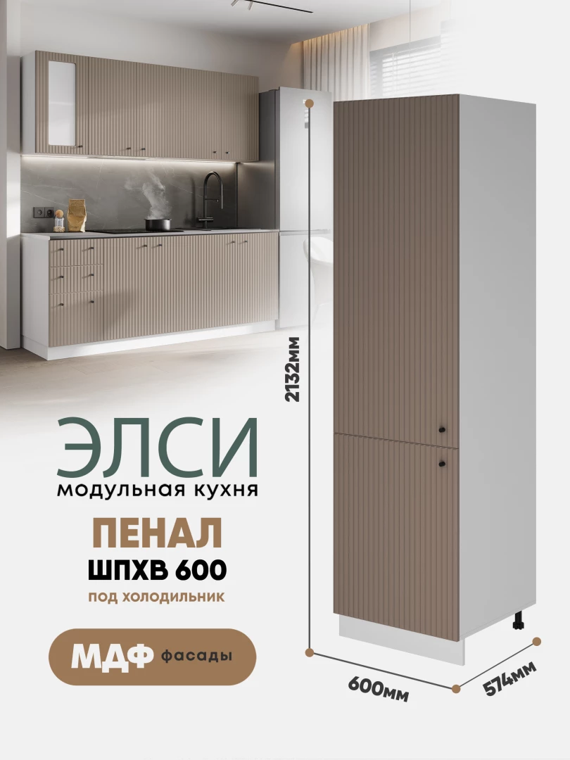 Шкаф - пенал под встраиваемый холодильник "Элси" ШПХВ 600 Белый