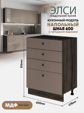Кухонный напольный модуль с 4-мя ящиками "Элси" ШН4Я 600 Ликата