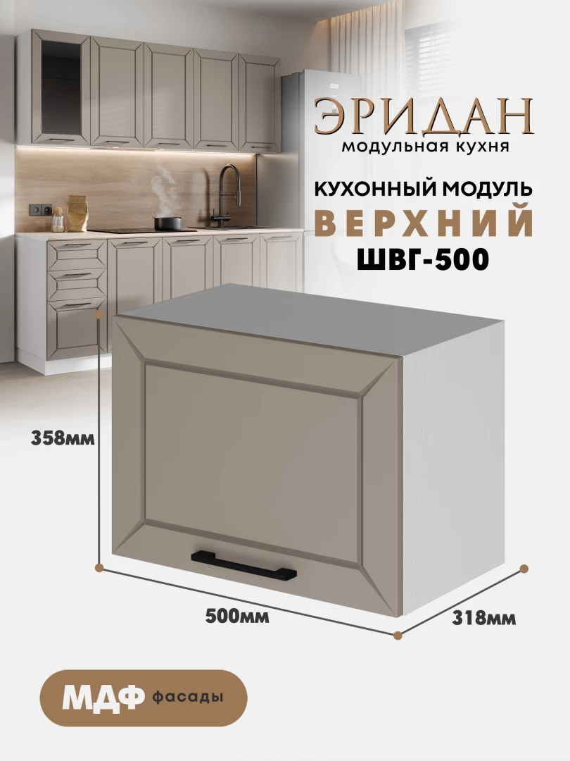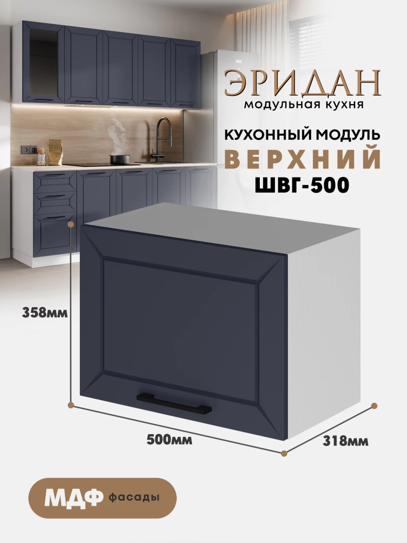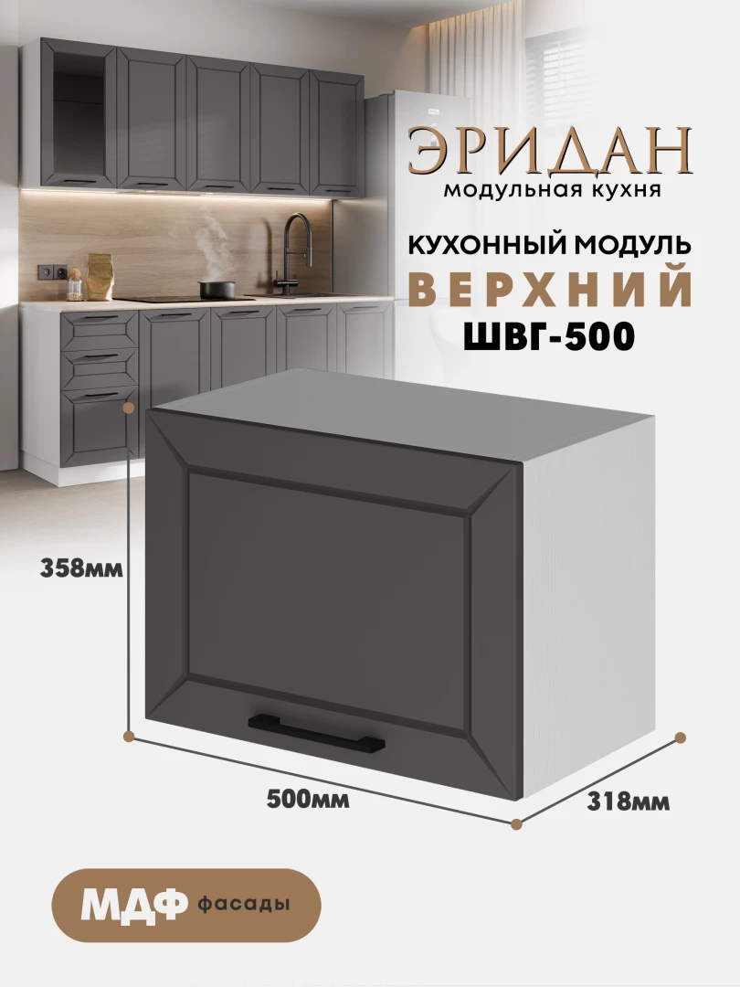 Кухонный навесной горизонтальный модуль ШВГ-500 «Эридан» Белый — это современный и удобный элемент кухонного гарнитура, идеально подходящий для хранения посуды и других необходимых предметов.