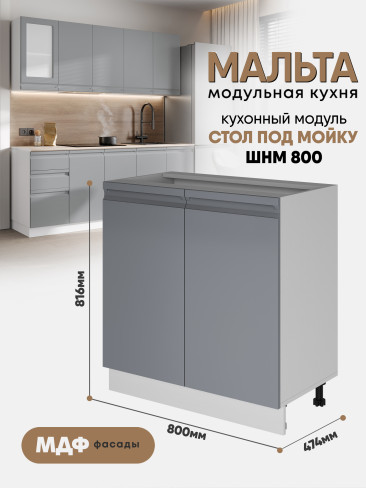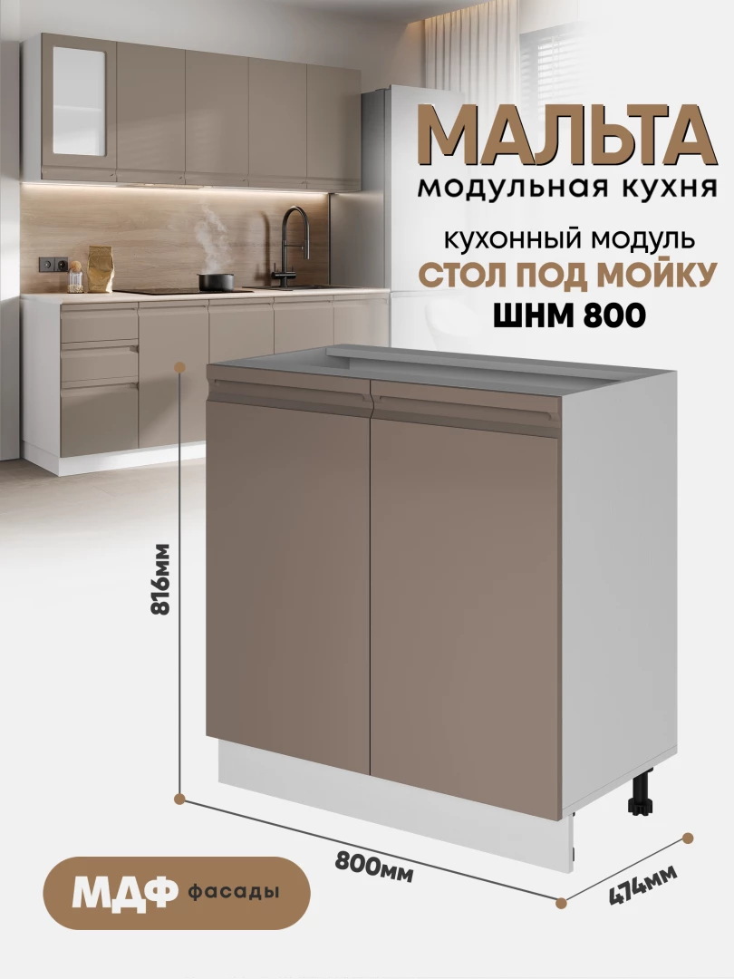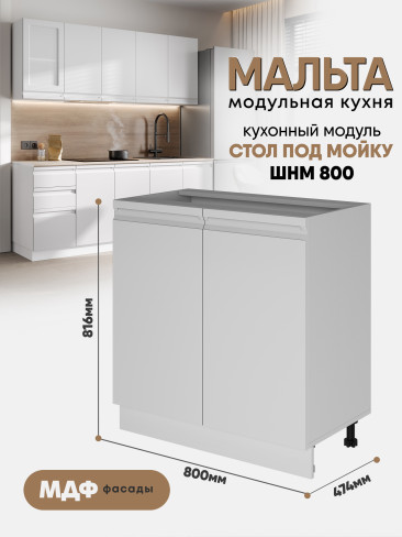 Кухонный модуль под мойку с двумя створками "Мальта" ШНМ-800 Белый