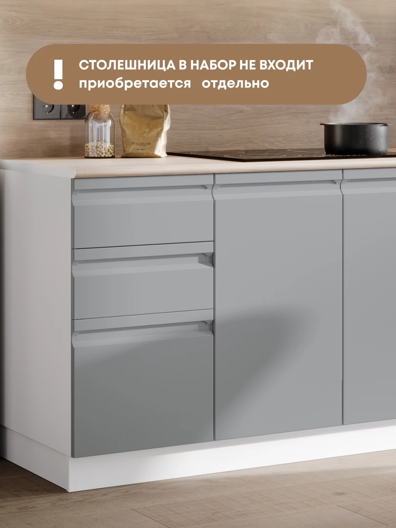 Вашему вниманию представлена модульная кухня «Мальта». ЕЕ мебельные фасады с встроенными ручками представляют собой стильное и функциональное решение для современных минималистичных интерьеров. Ручки интегрируются в поверхность фасада, что делает их проще в уходе и безопаснее.