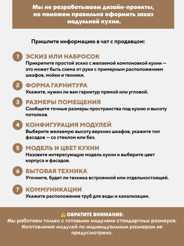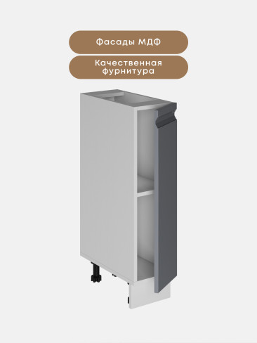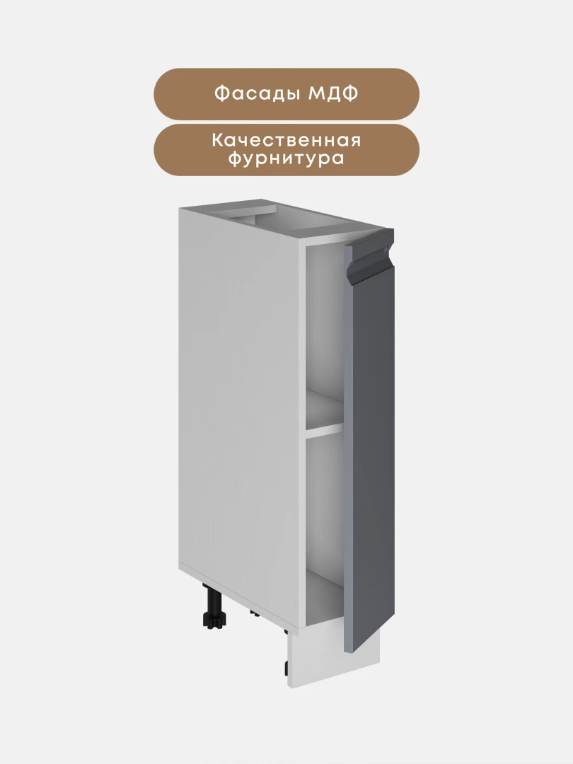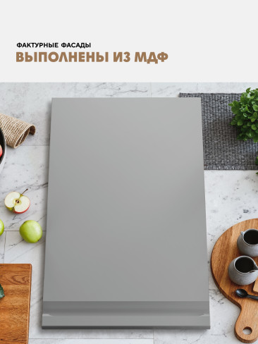 Фасады кухни выполнены из МДФ, что придает мебели дорогой и презентабельный вид и не оказывает отрицательного действия на здоровье человека в процессе эксплуатации.