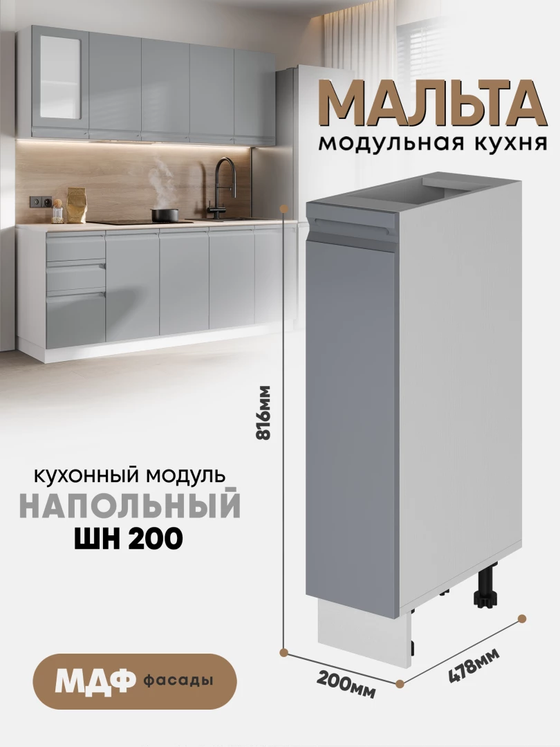 Кухонный напольный модуль "Мальта" ШН 200 Белый