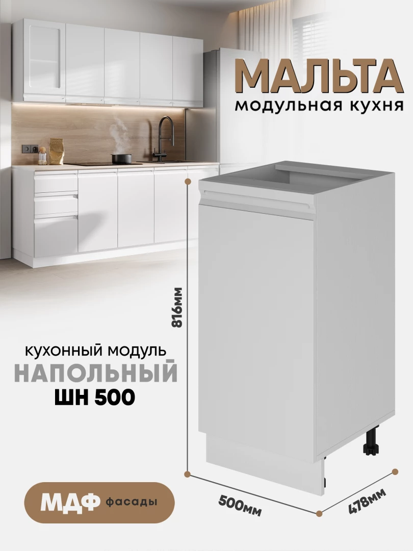 Кухонный напольный модуль "Мальта" ШН 500 Белый