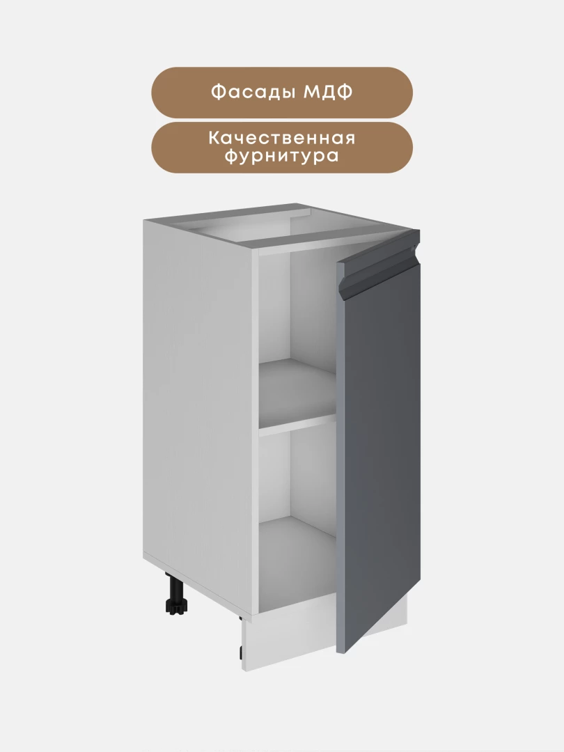 Фасады кухни выполнены из МДФ, что придает мебели дорогой и презентабельный вид и не оказывает отрицательного действия на здоровье человека в процессе эксплуатации.