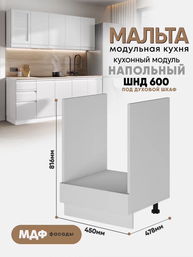 Кухонный напольный модуль под духовой шкаф "Мальта" ШНД-600 Белый