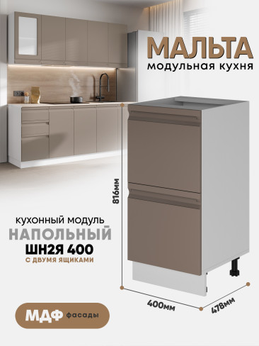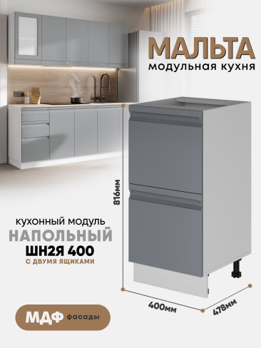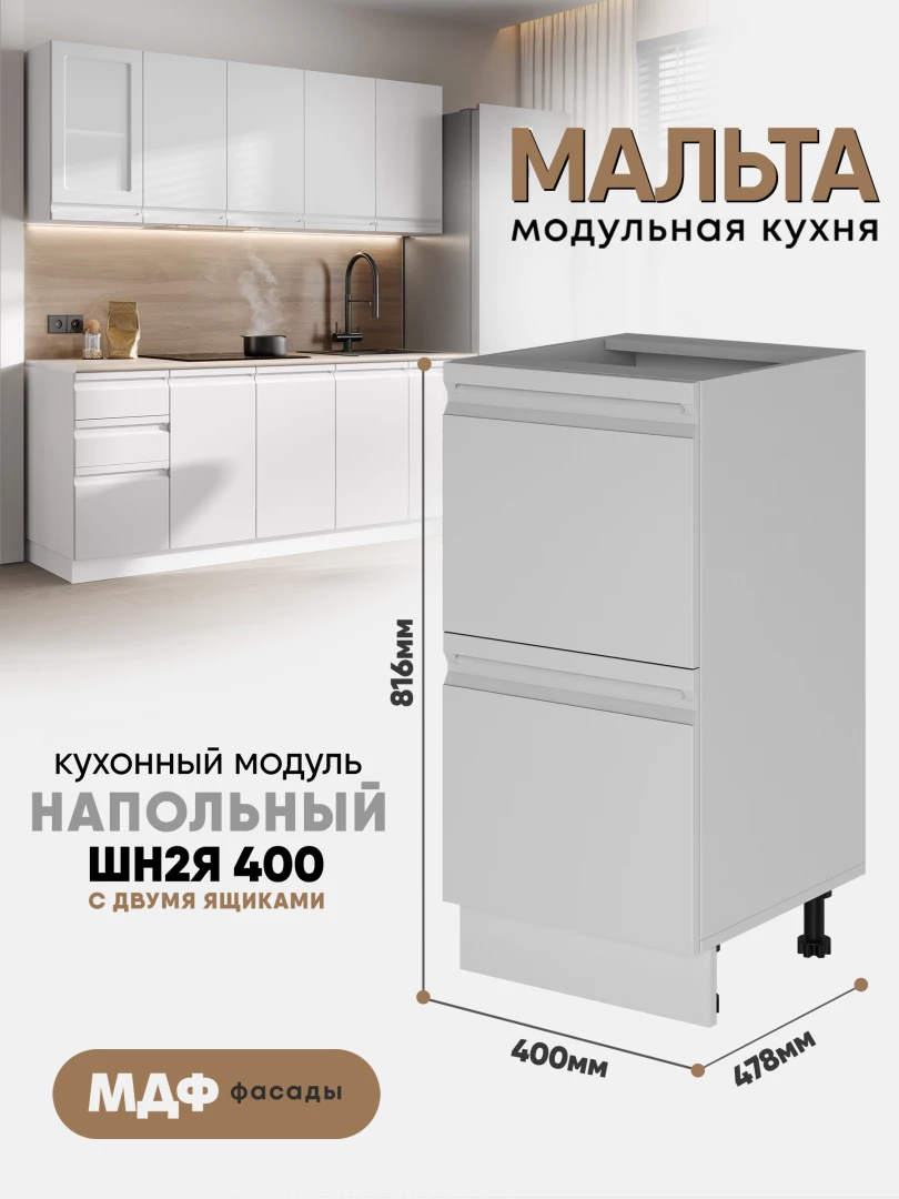 Кухонный напольный модуль с двумя ящиками "Мальта" ШН2Я-400 Белый