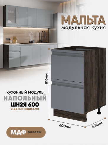 Кухонный напольный модуль с двумя ящиками "Мальта" ШН2Я-600 Ликата