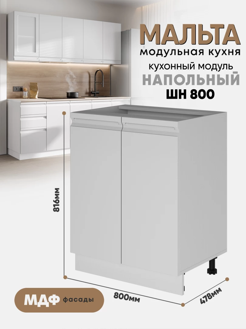 Кухонный напольный модуль с двумя створками "Мальта" ШН 800 Белый
