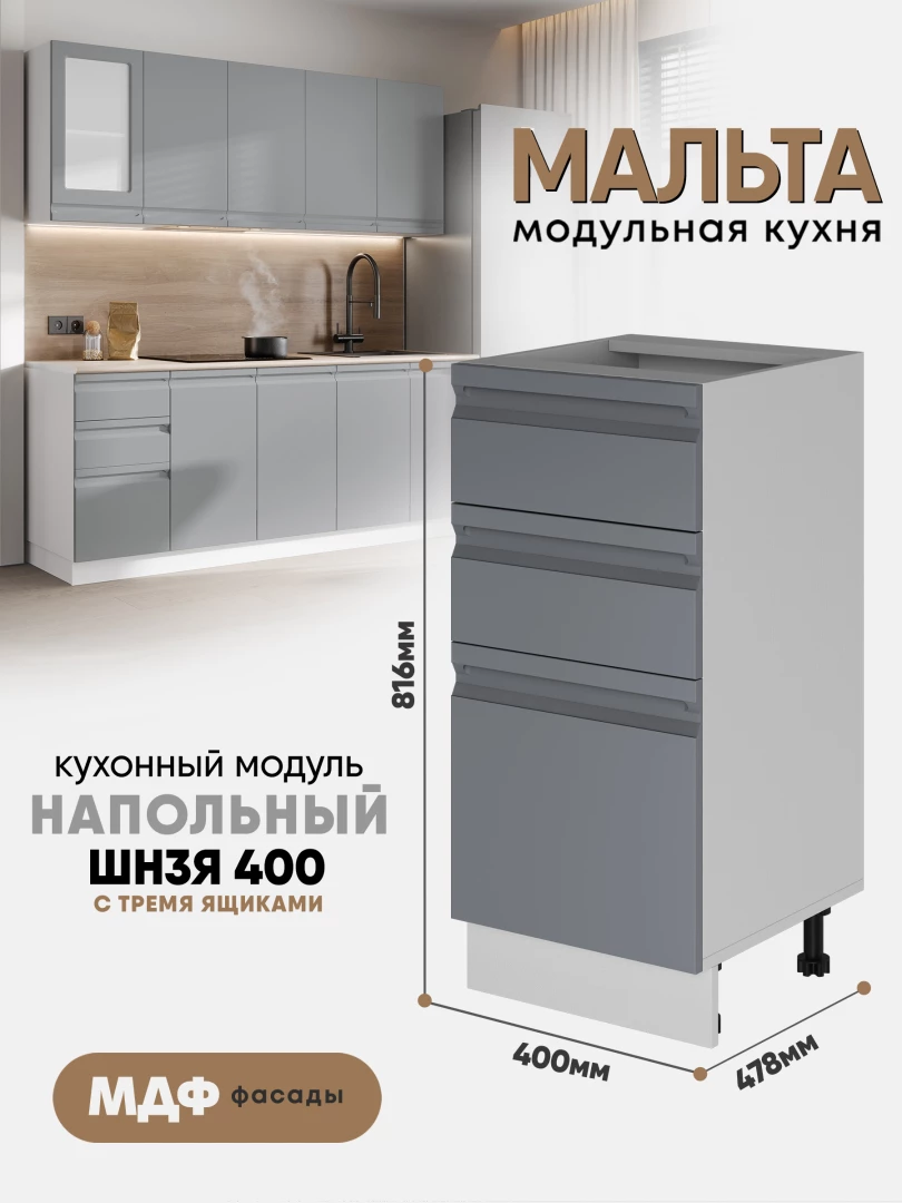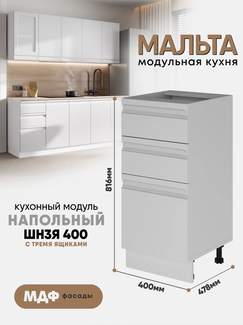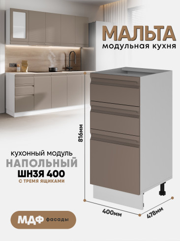 Кухонный напольный модуль с тремя ящиками "Мальта" ШН3Я 400 Белый