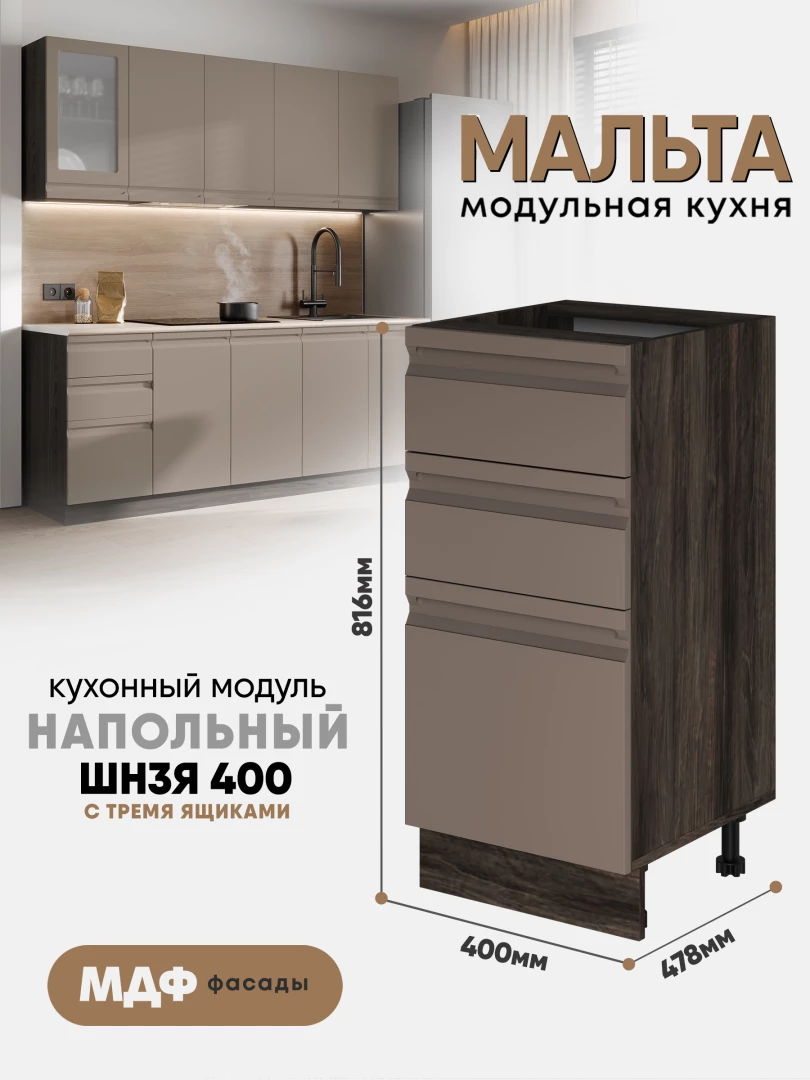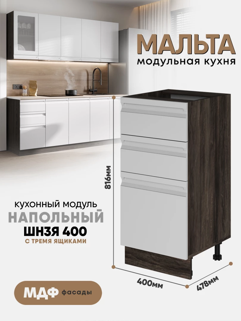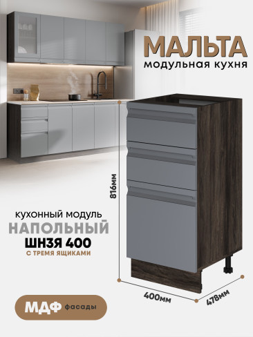 Кухонный напольный модуль с тремя ящиками "Мальта" ШН3Я 400 Ликата