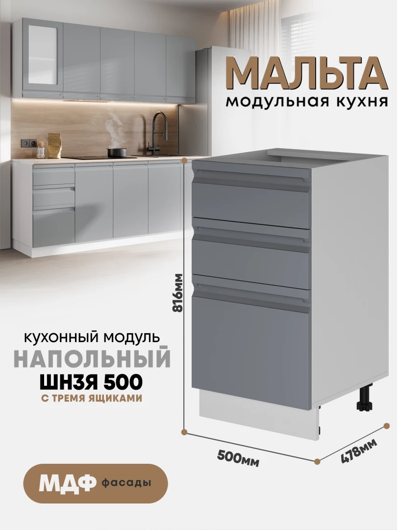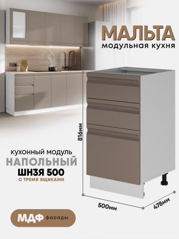 Кухонный напольный модуль с тремя ящиками "Мальта" ШН3Я 500 Белый
