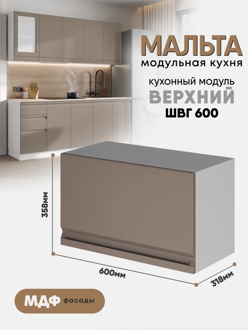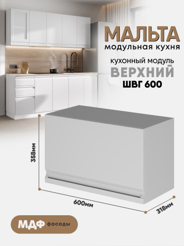 Кухонный навесной горизонтальный модуль "Мальта" ШВГ 600 Белый