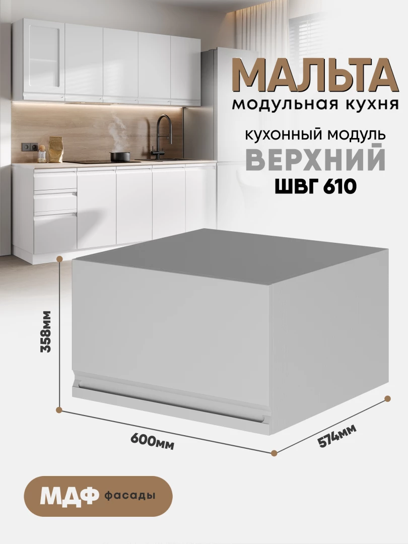Кухонный навесной горизонтальный модуль "Мальта" ШВГ 610 Белый