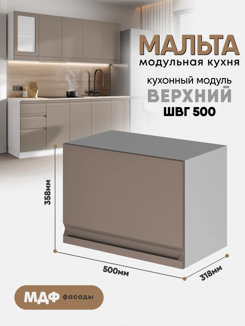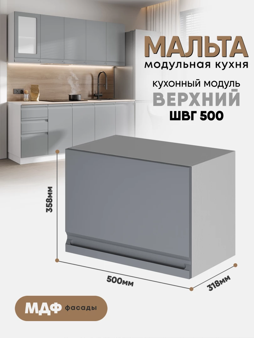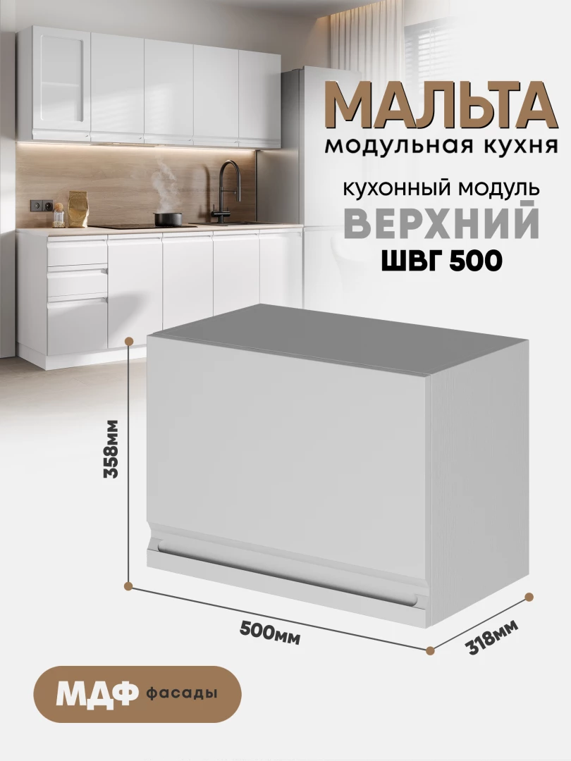 Кухонный навесной модуль (антресоль) "Мальта" ШВГ 500 Белый