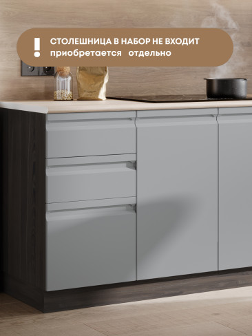 Корпус и фасады кухни представлены в актуальных трендовых цветах, что позволит легко сочетать их с другой мебелью.