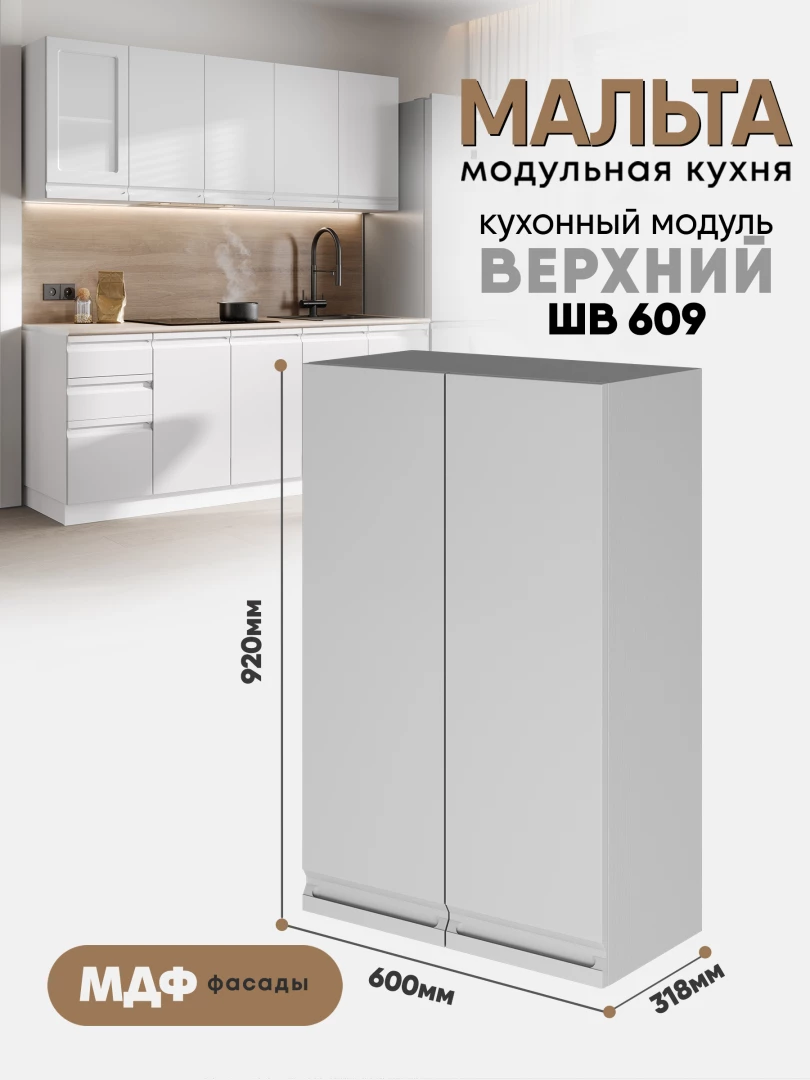 Кухонный навесной модуль с двумя створками "Мальта" ШВ 609 Белый