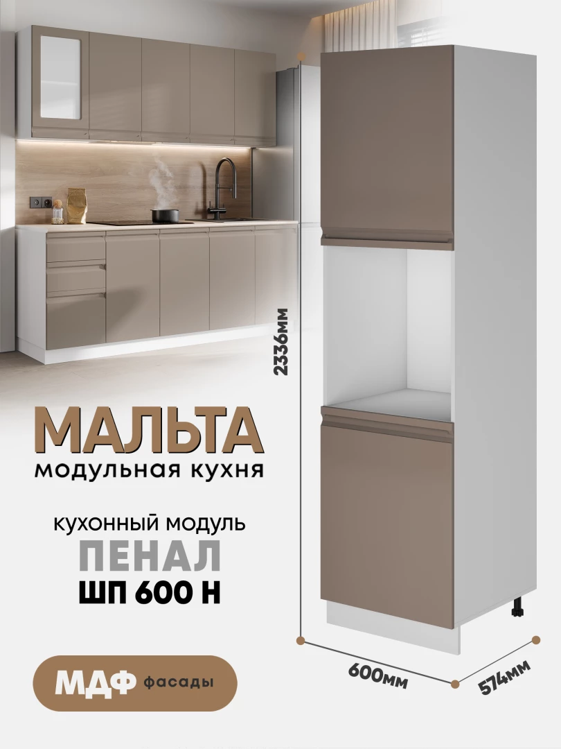 Шкаф-пенал для кухни "Мальта" ШП 600Н Белый