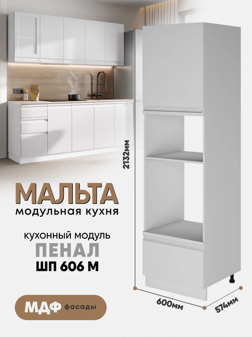 Шкаф-пенал для кухни с ящиком "Мальта" ШП 606М Белый