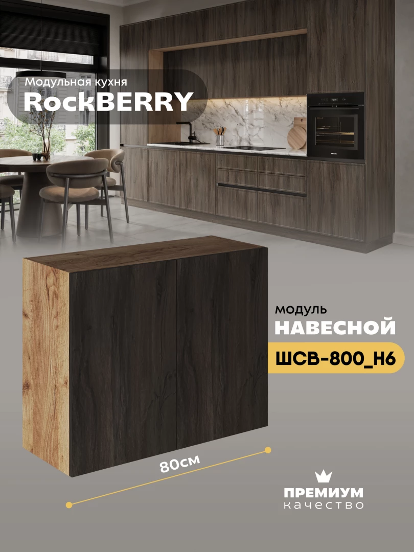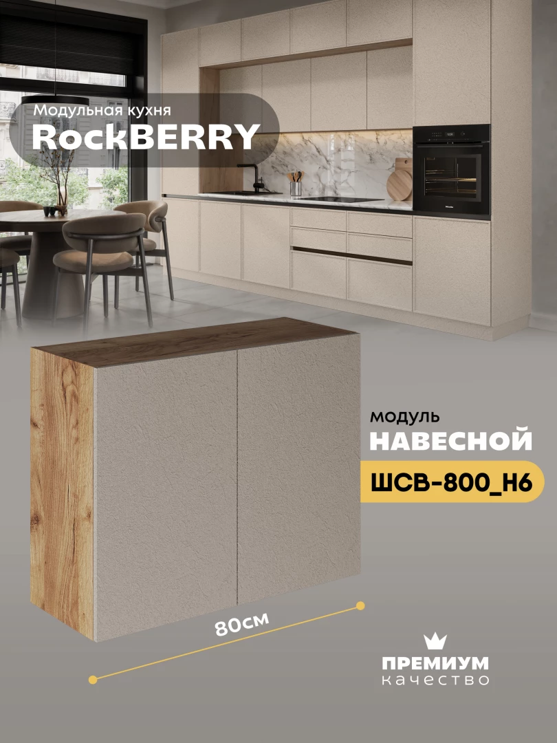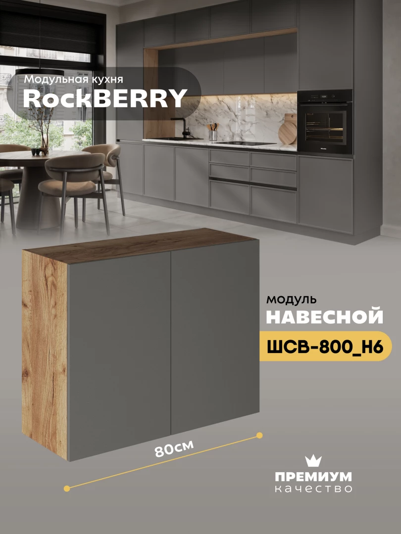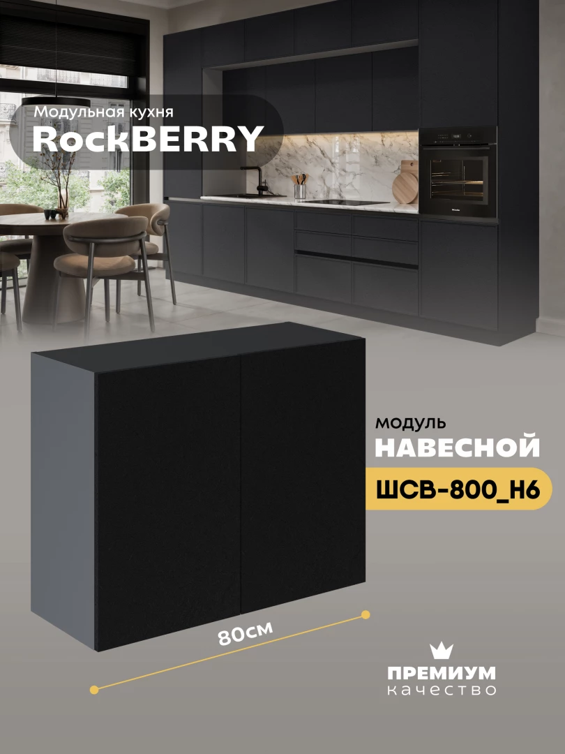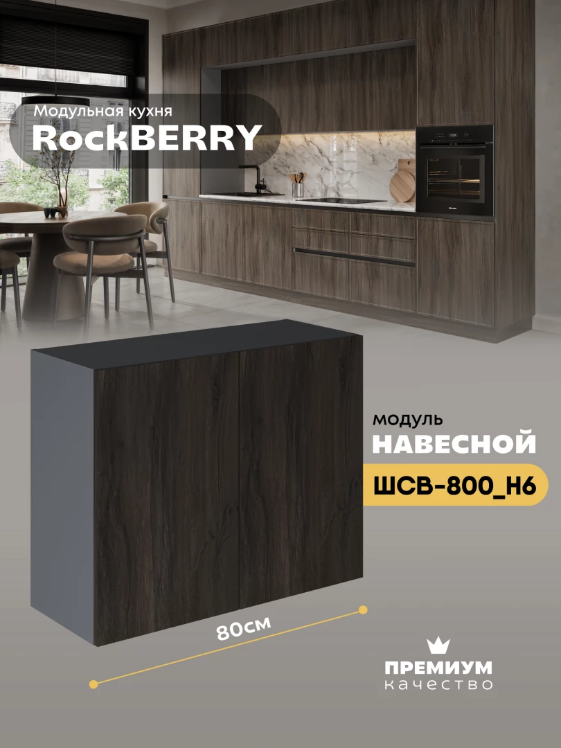 Навесной модуль с двумя створками ШСВ-800 для кухни из модульной программы «РокБерри»