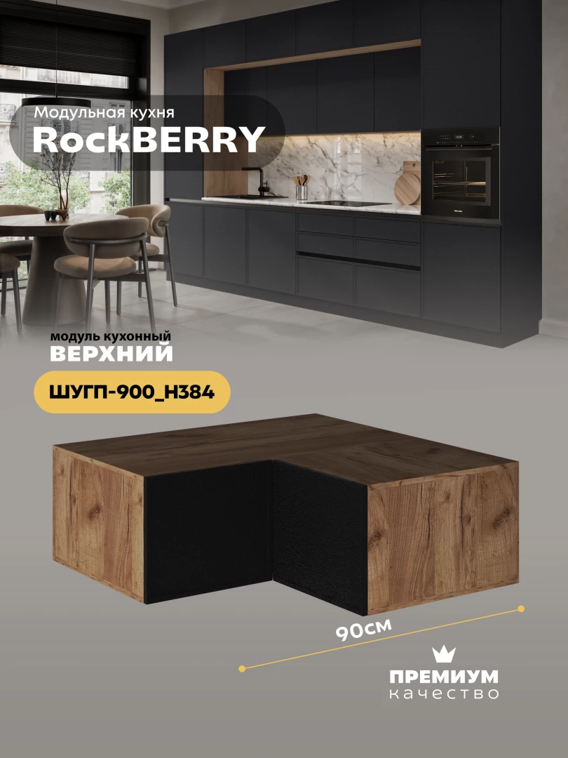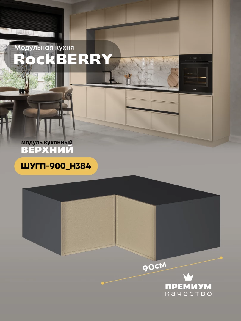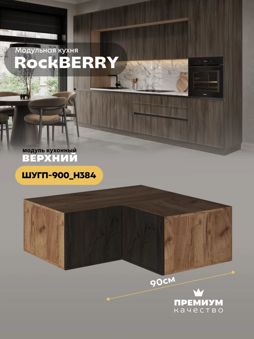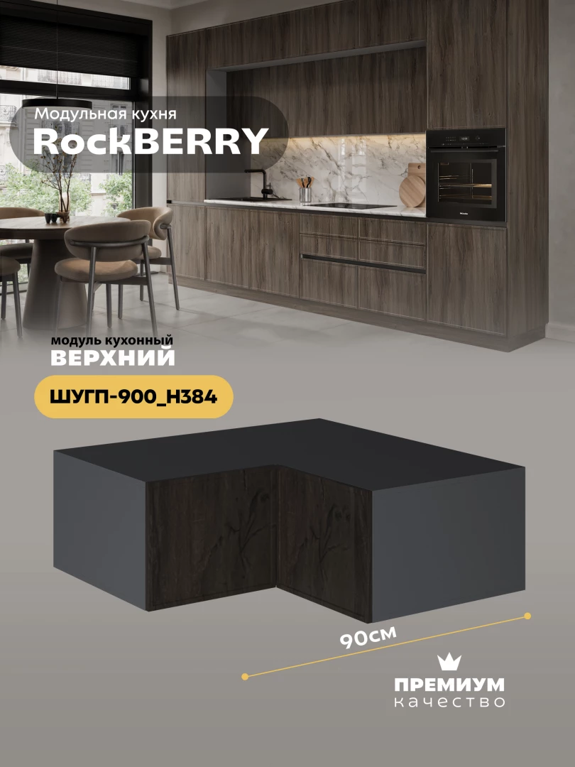Угловая антресоль ШУГП-900 - настенный модуль для кухни из модульной программы «РокБерри»