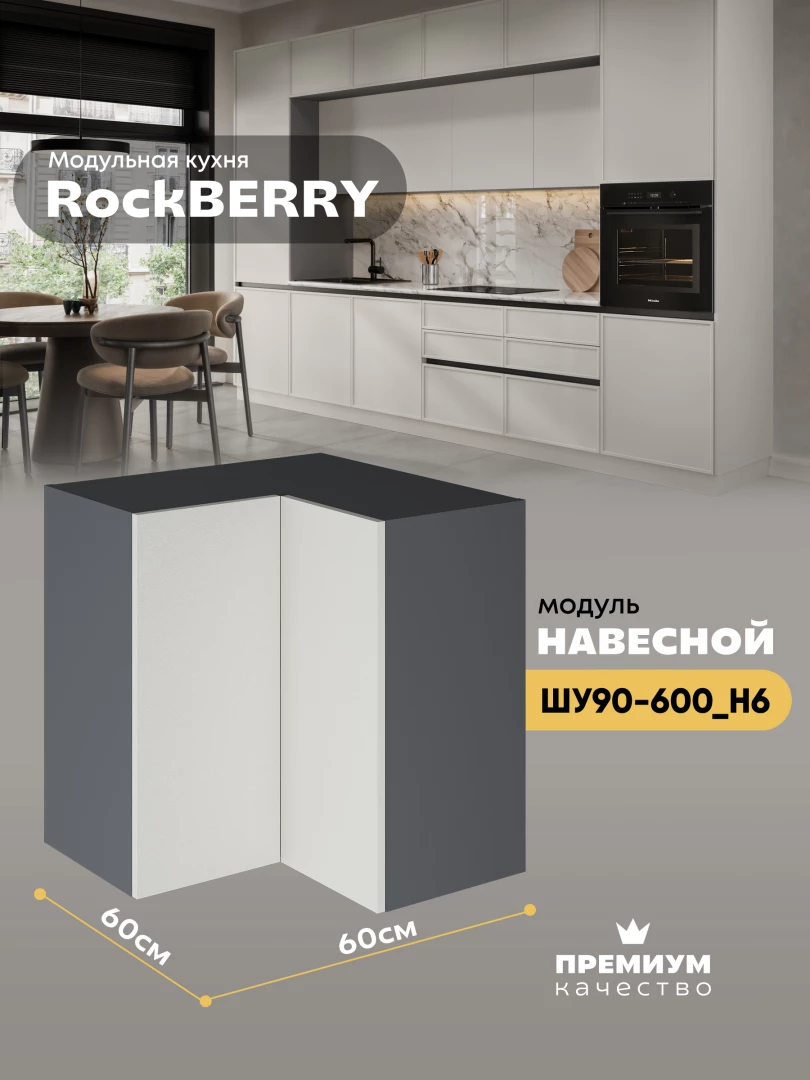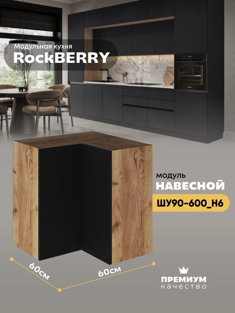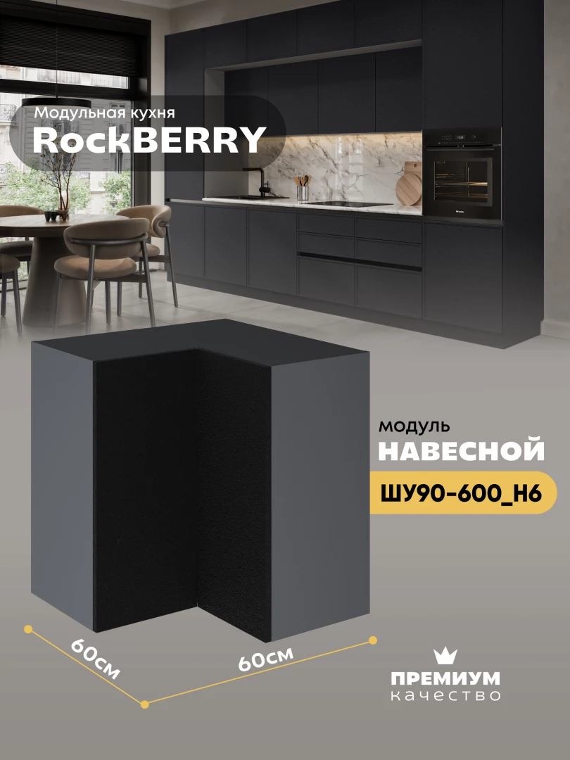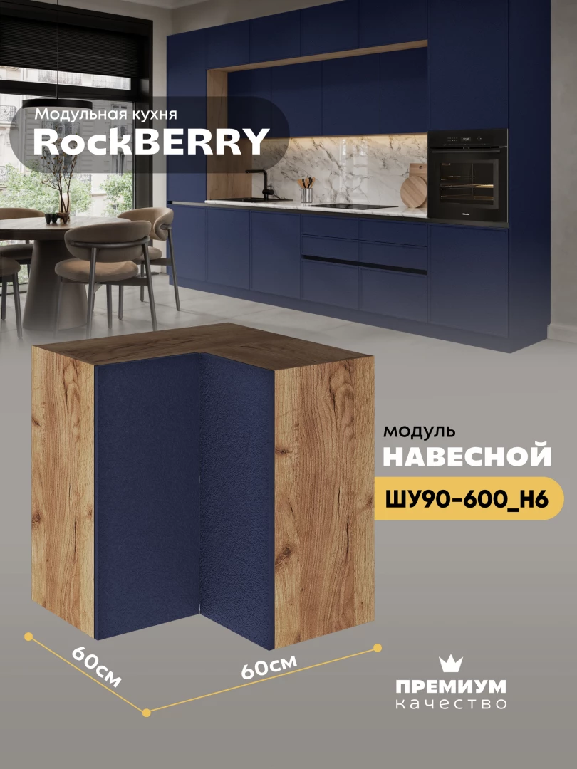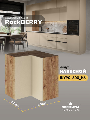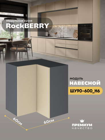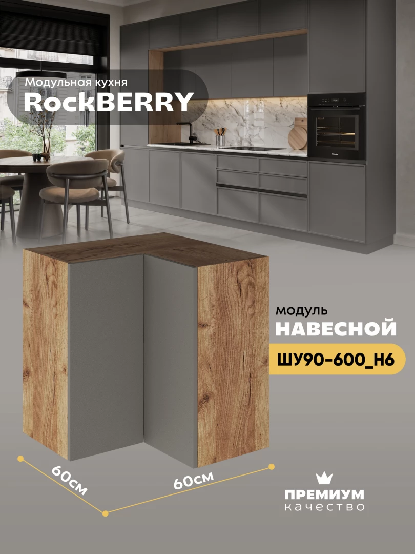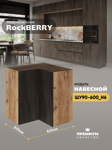 Навесной угловой модуль ШУ90-600 для кухни из модульной программы «РокБерри»