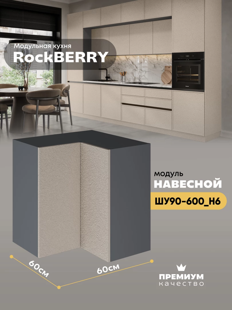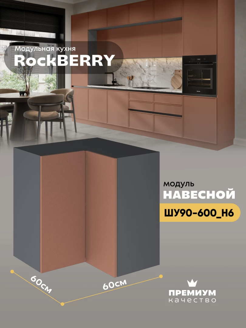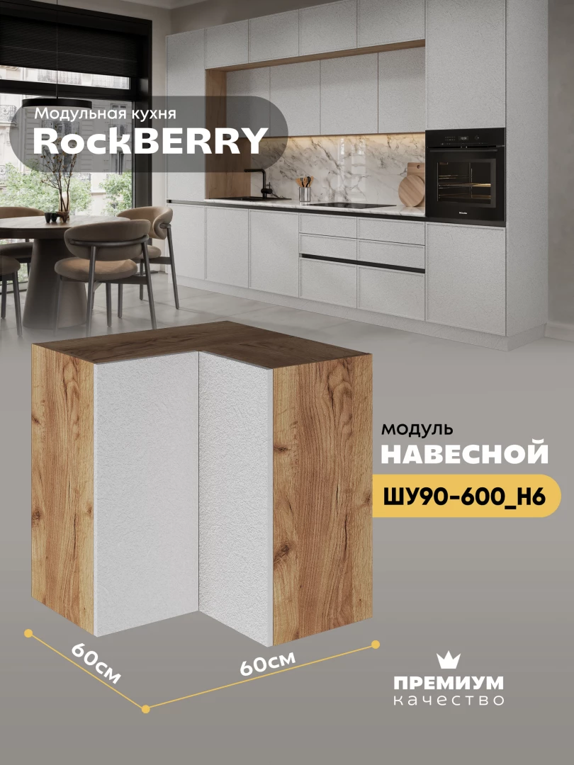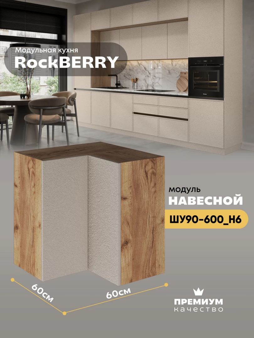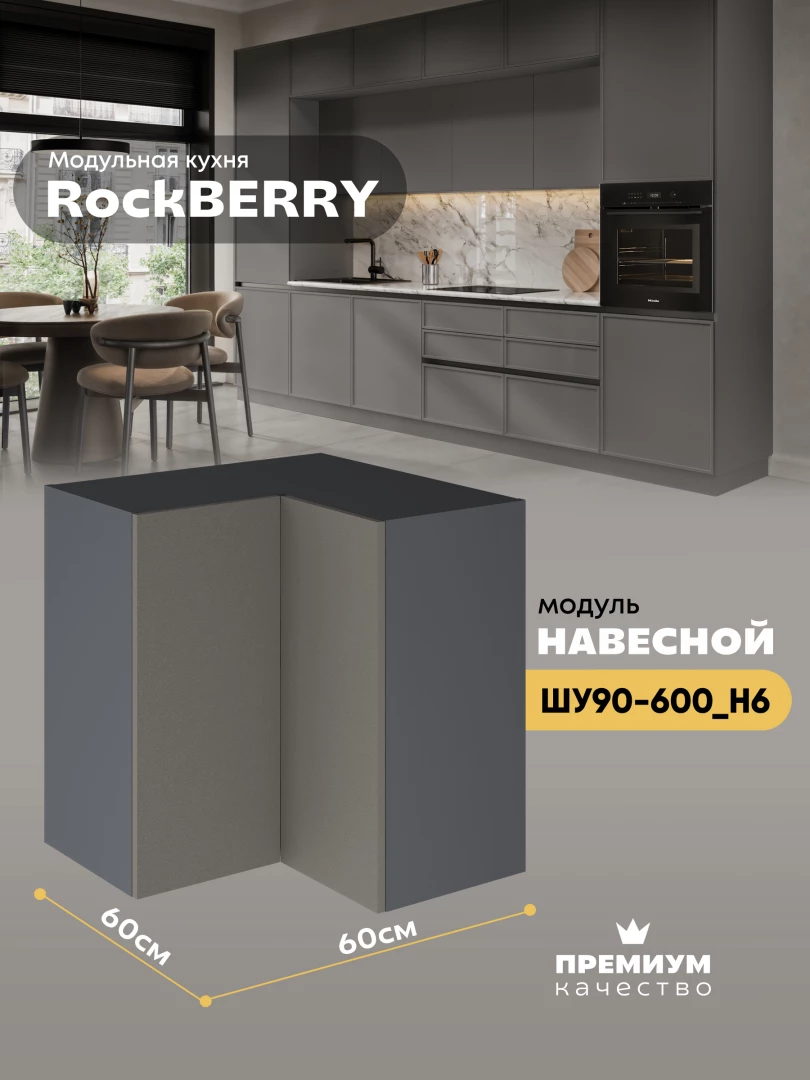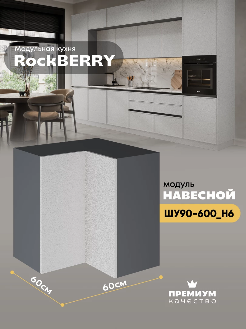 Навесной угловой модуль ШУ90-600 для кухни из модульной программы «РокБерри»