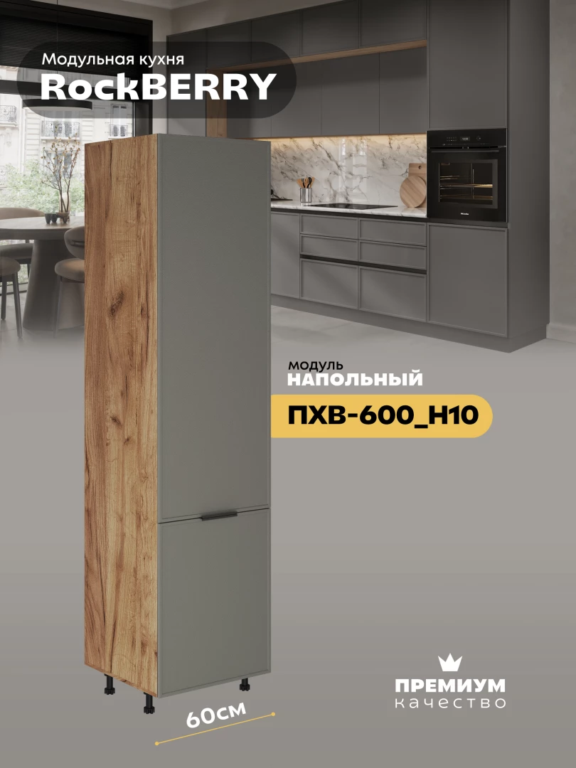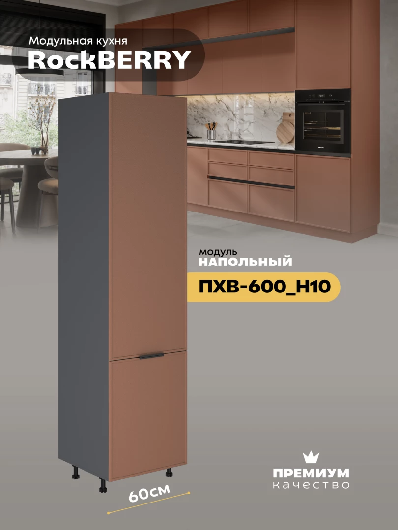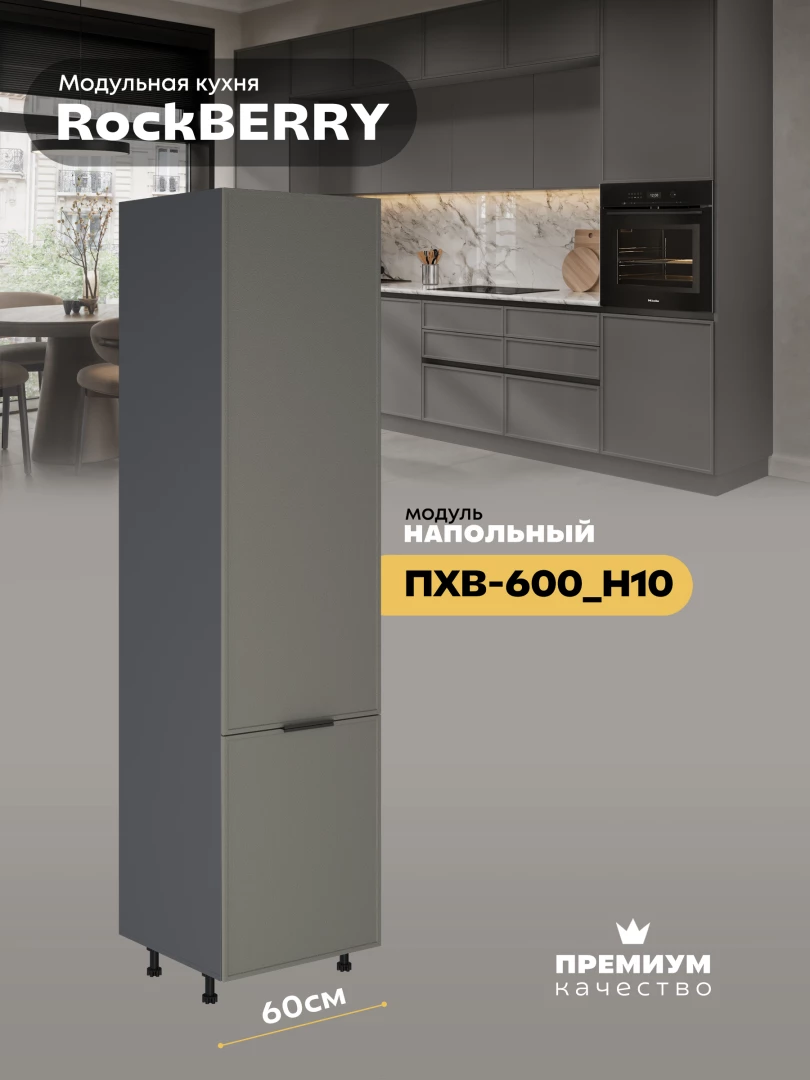 Шкаф - пенал для кухни ПХВ-600 для встроенного холодильника из модульной программы «РокБерри»