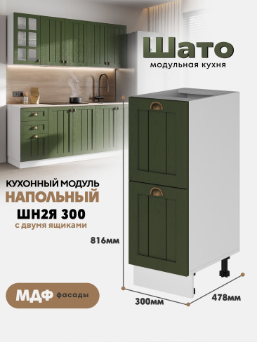 Кухонный модуль напольный с 2-мя ящиками "Шато" ШН2Я-300 Ф12 (Тайный лес/Белый)