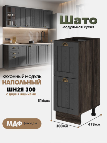 Кухонный модуль напольный с 2-мя ящиками "Шато" ШН2Я-300 Ф12 (Тайный лес/Орех ликата)
