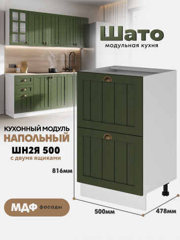 Кухонный модуль напольный с 2-мя ящиками "Шато" ШН2Я-500 Ф32 (Тайный лес/Белый)
