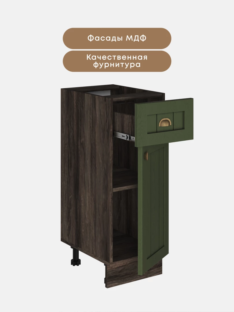 Напольный модуль ШН1Я 300 «Шато» Ликата идеально подойдёт для хранения столовых приборов, кухонных аксессуаров и мелочей, добавив в интерьер удобство и стиль.