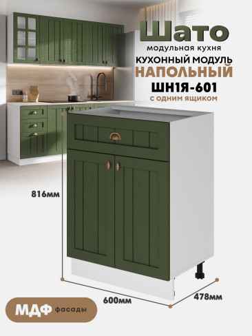 Кухонный модуль напольный с ящиком и дверкой "Шато" ШН1Я-601 Ф41М (Тайный лес/Белый)