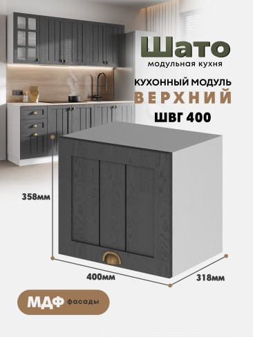 Настенный модуль ШВГ 400 (антресоль) «Шато»  Белый  станет стильным дополнением гарнитура и поможет рационально организовать кухонное пространство.