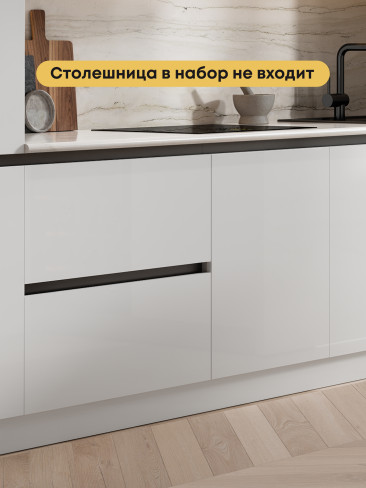 В данной коллекции используется система профилей Gola. У кухонь с профилем нет ручек: чтобы открыть ящик или шкаф, нужно просто потянуть за фасад. А профиль на корпусе необходим, чтобы создать за фасадом пространство для захвата рукой.