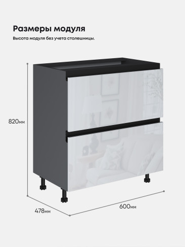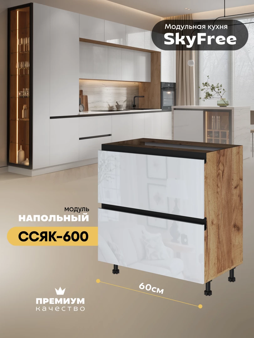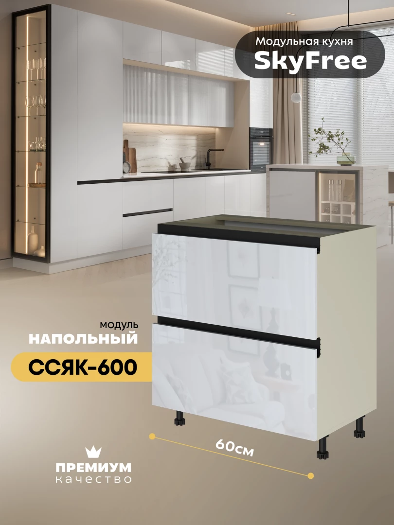 Кухонный напольный модуль с двумя выдвижными ящиками (с посудосушкой) "СкайФри" ССЯК-600 Глянцевый