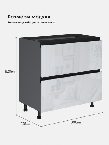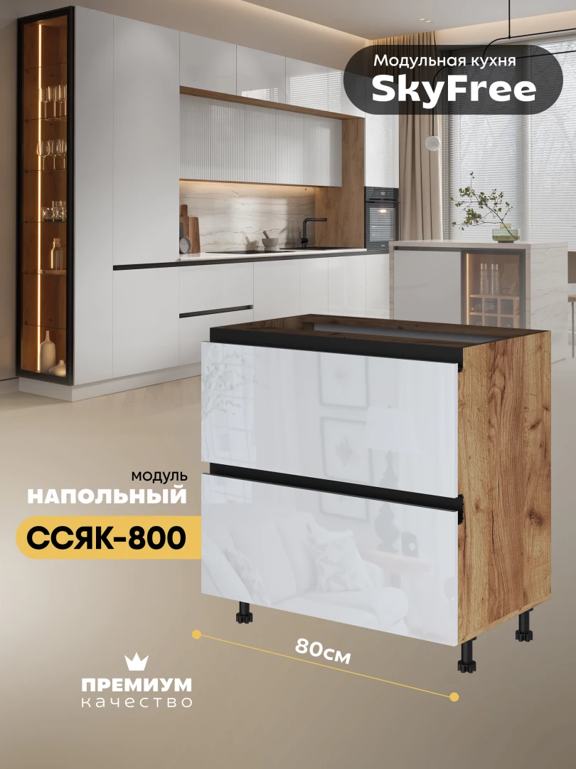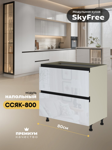 Кухонный напольный модуль с двумя выдвижными ящиками (с посудосушкой) "СкайФри" ССЯК-800 Глянцевый