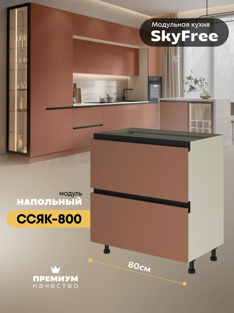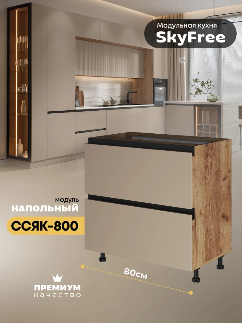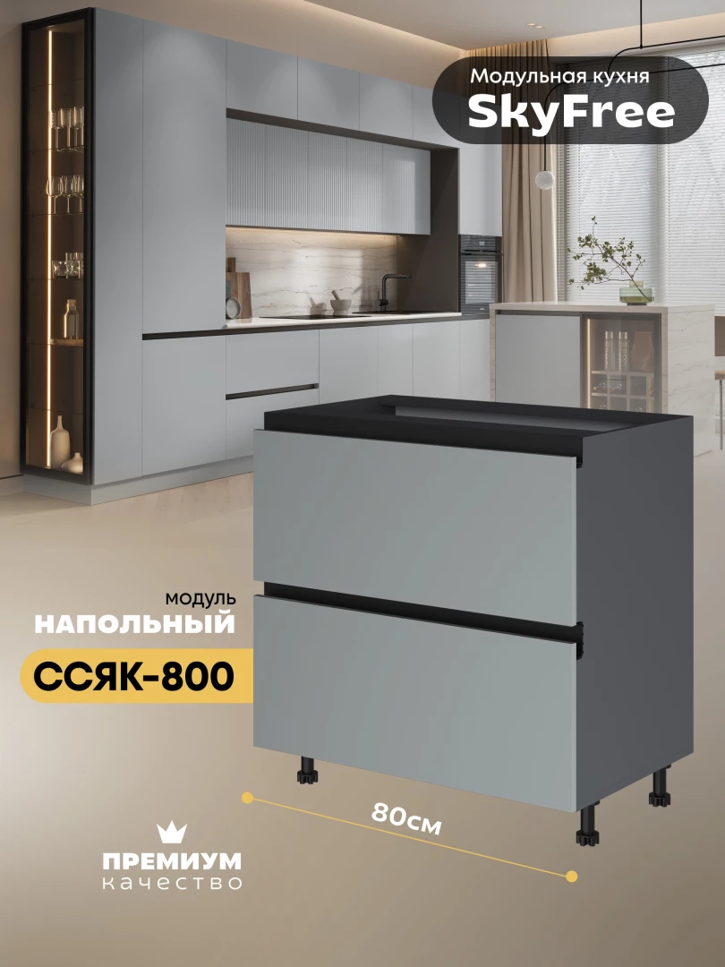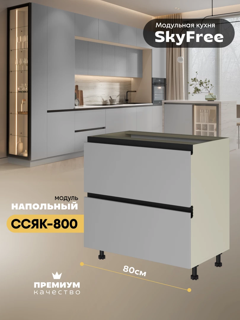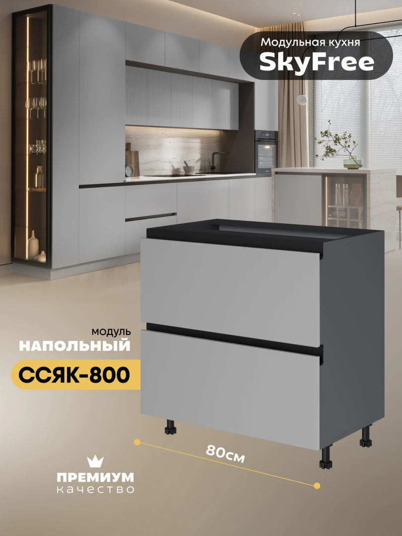 Кухонный напольный модуль с двумя выдвижными ящиками (с посудосушкой) "СкайФри" ССЯК-800 Матовый