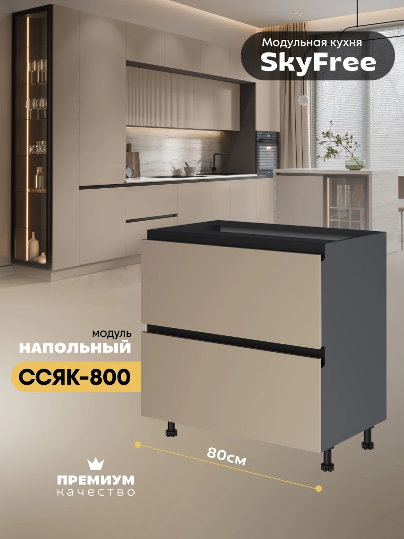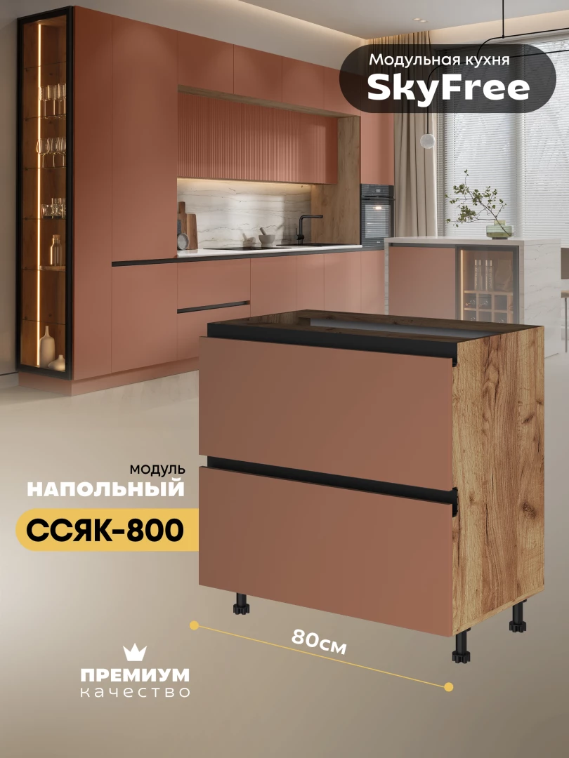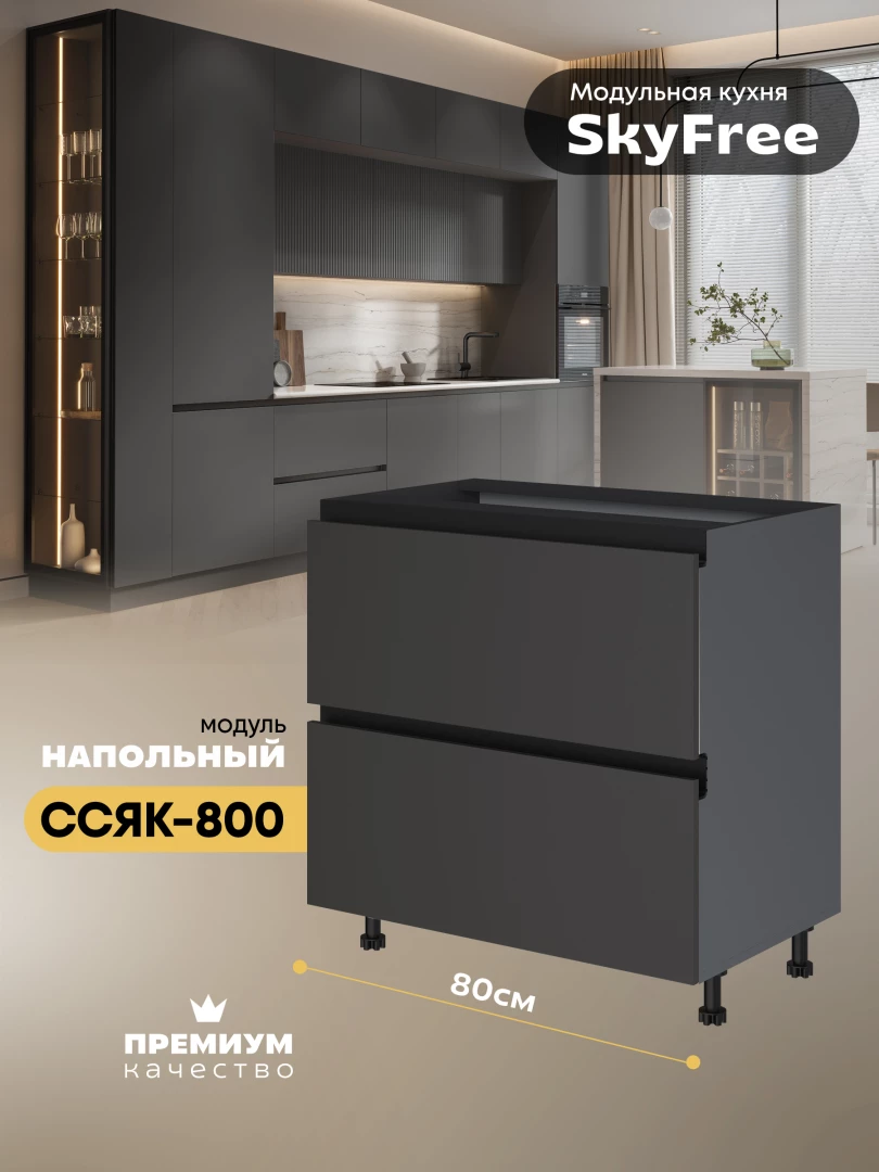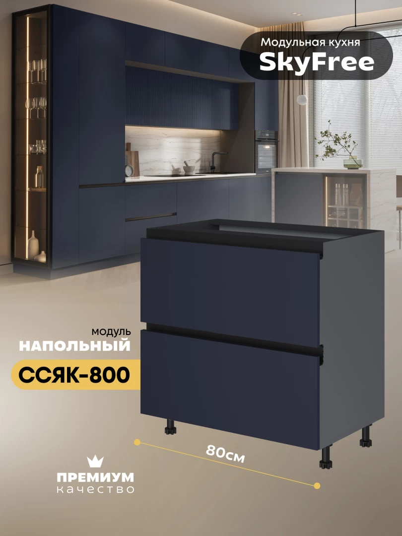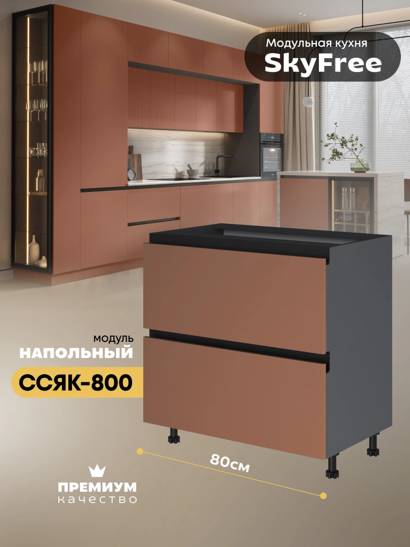 Кухонный напольный модуль с двумя выдвижными ящиками (с посудосушкой) "СкайФри" ССЯК-800 Матовый