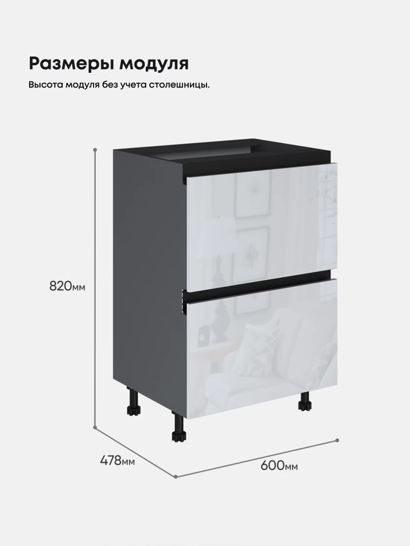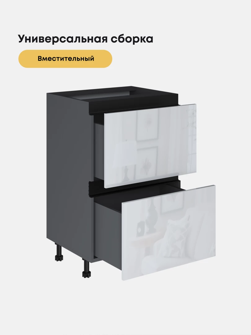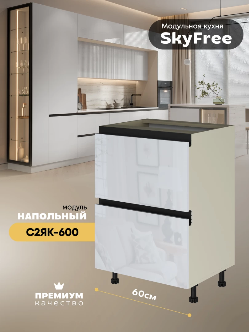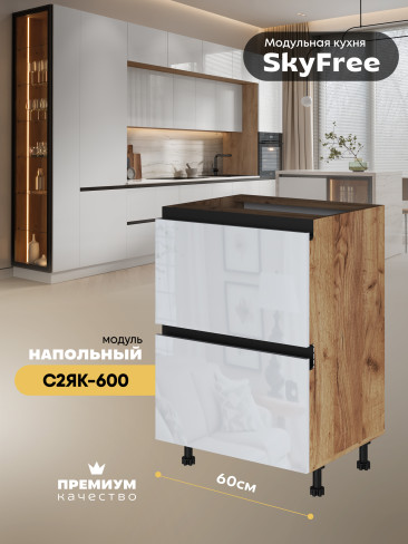 Кухонный напольный модуль с двумя выдвижными ящиками "СкайФри" С2ЯК-600 Глянцевый