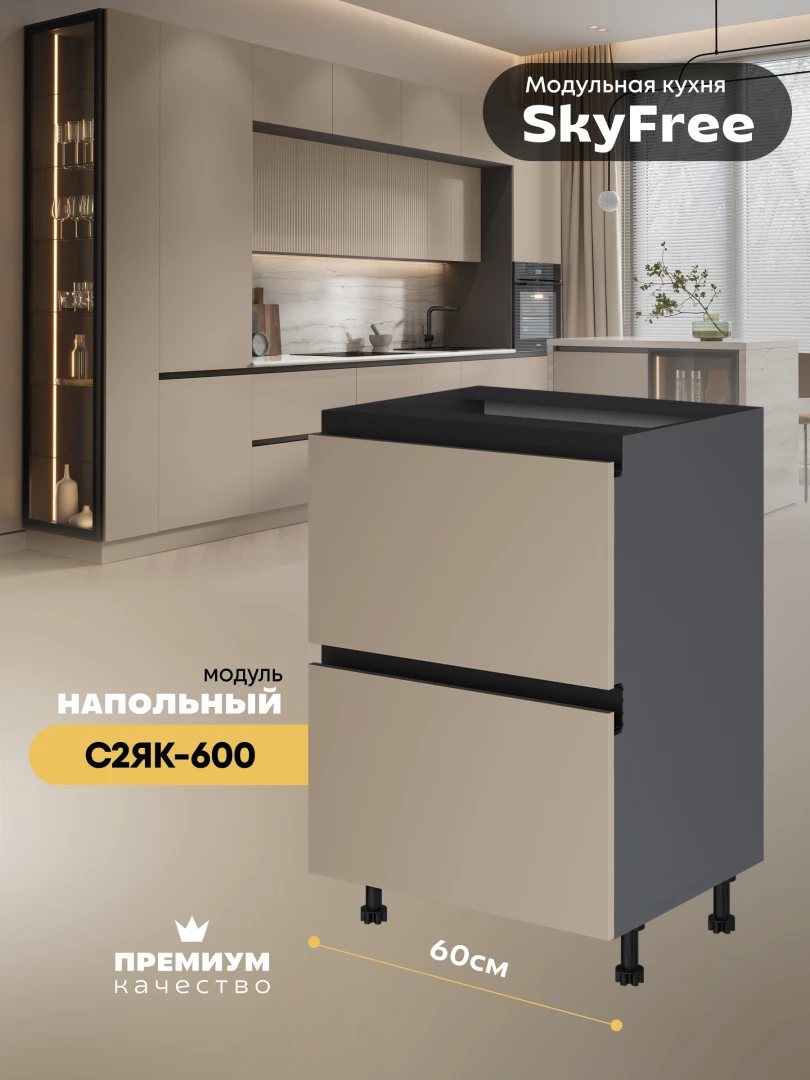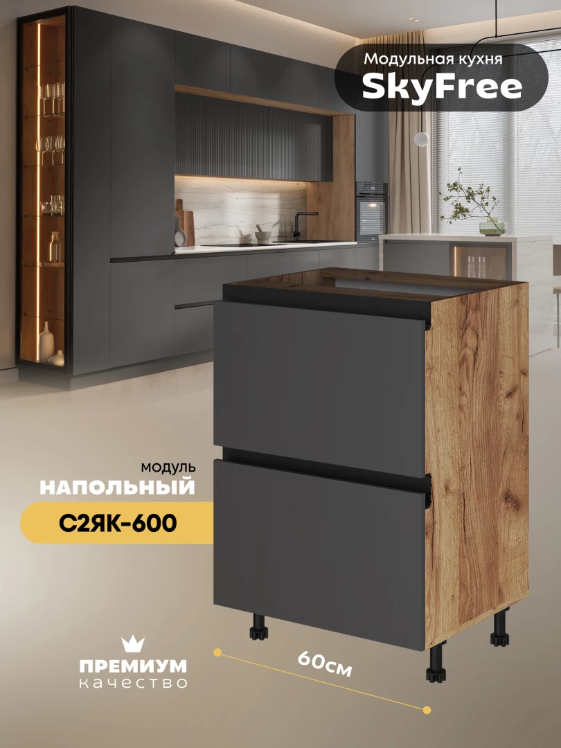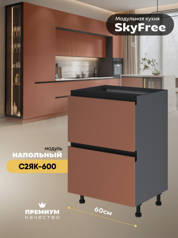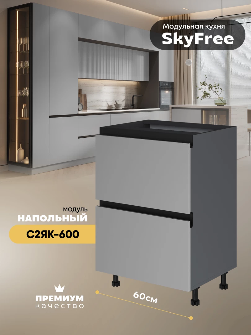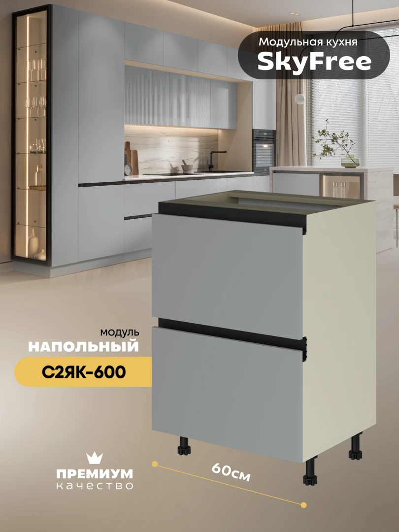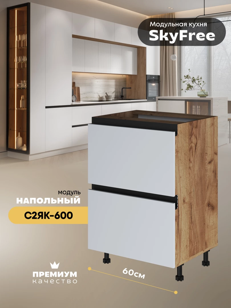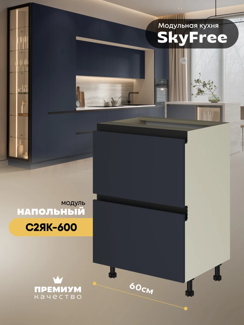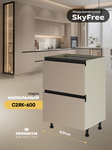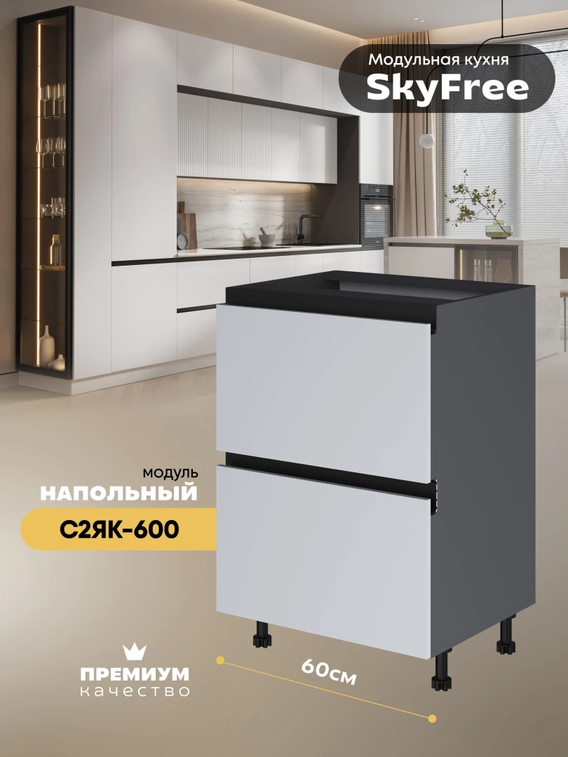 Кухонный напольный модуль с двумя выдвижными ящиками "СкайФри" С2ЯК-600 Матовый