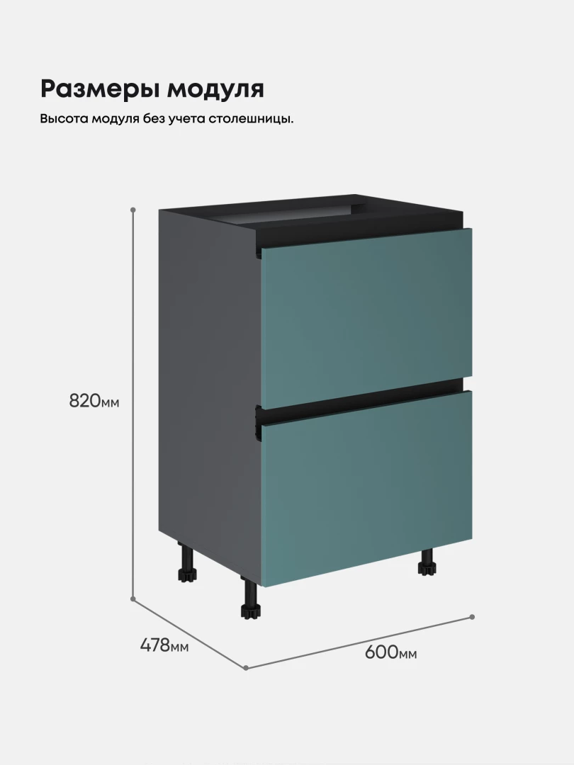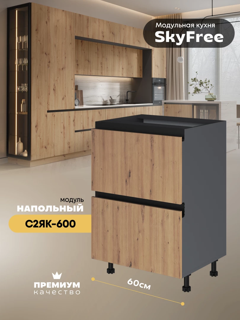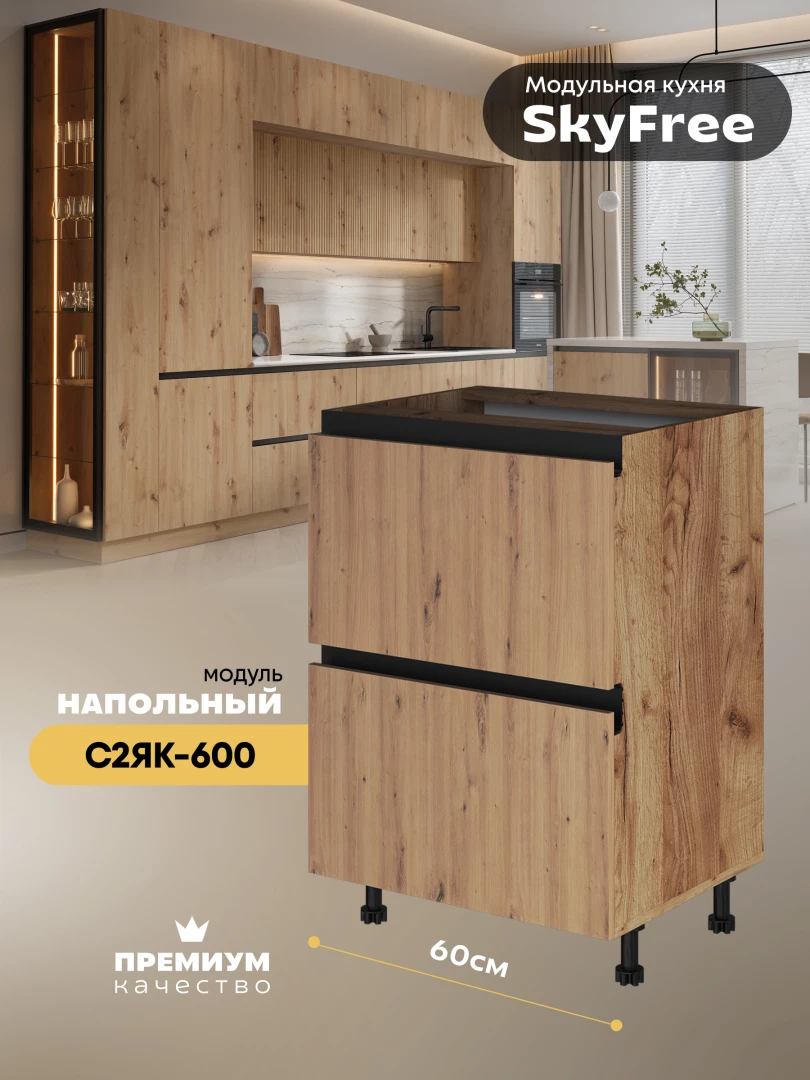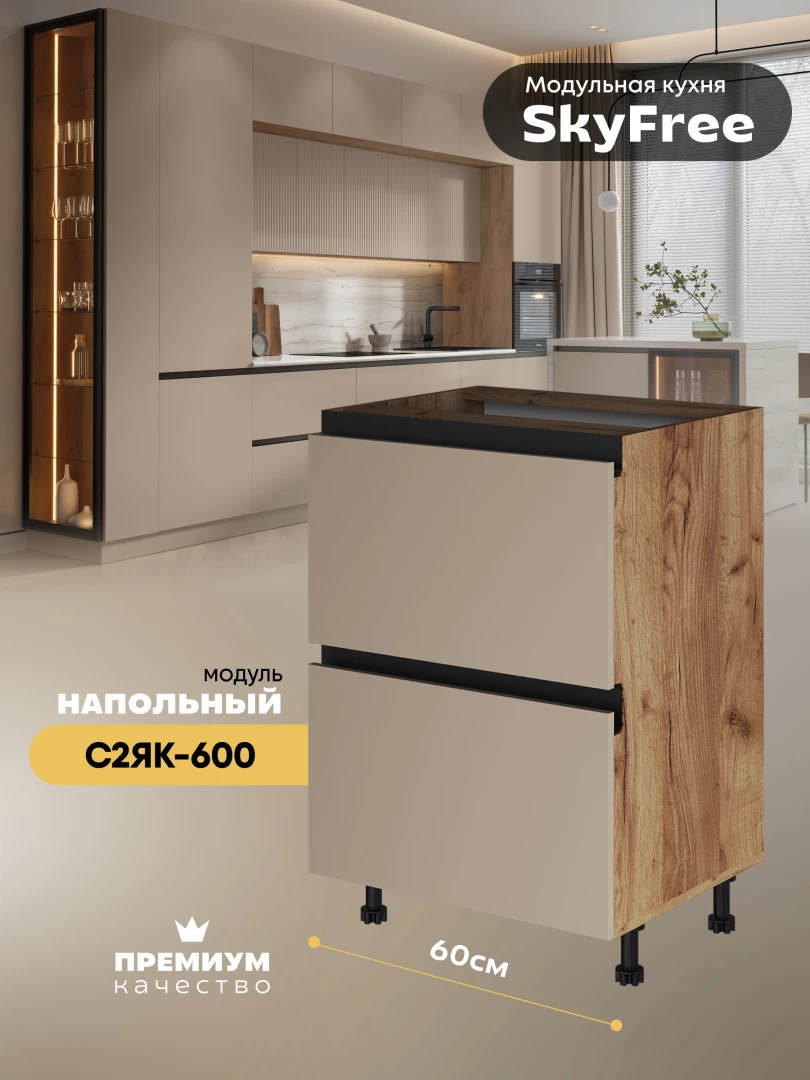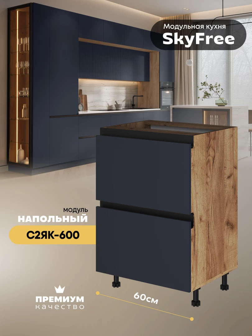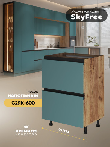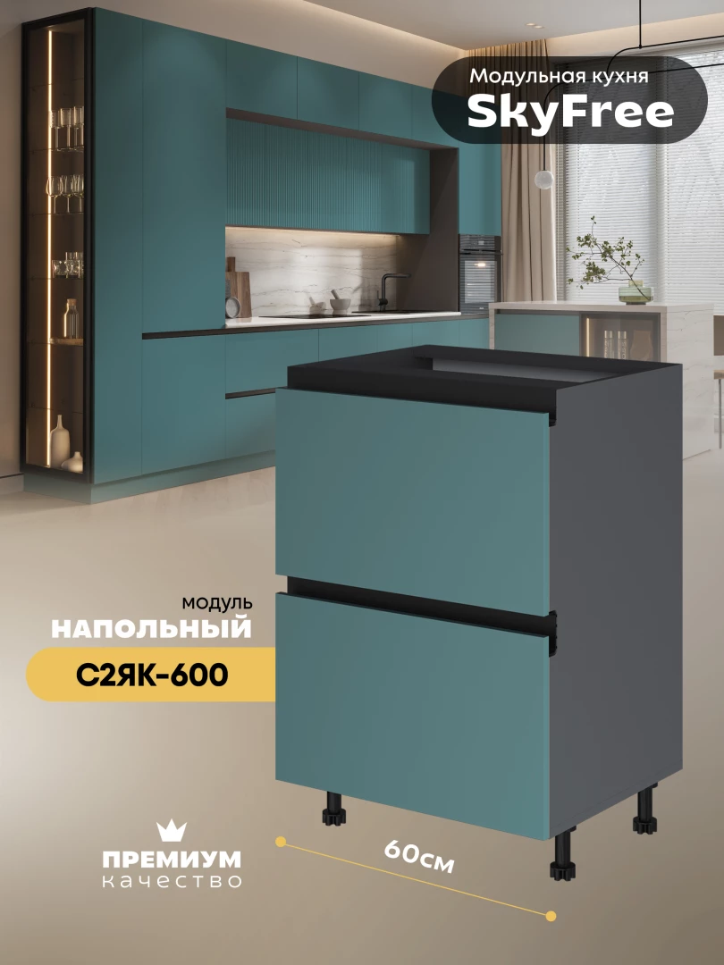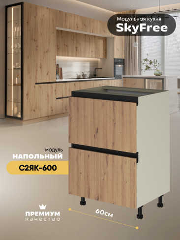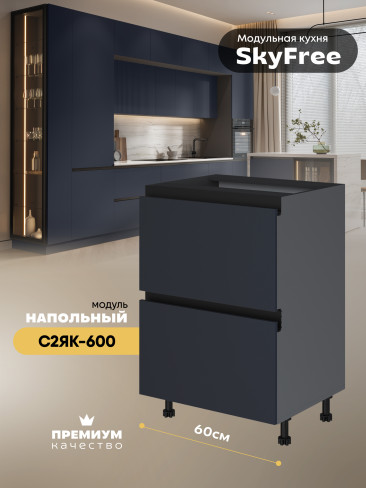 Кухонный напольный модуль с двумя выдвижными ящиками "СкайФри" С2ЯК-600 Матовый