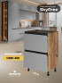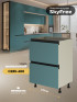 Кухня-гостинная СкайФри специально разработана для квартир с объединенной кухней и гостиной. Трехуровневые кухни оснащены антресолями. Большой выбор модулей. Уникальные модули и тумба-остров.