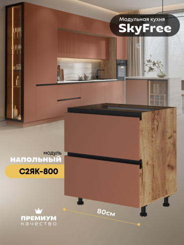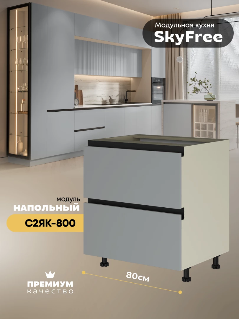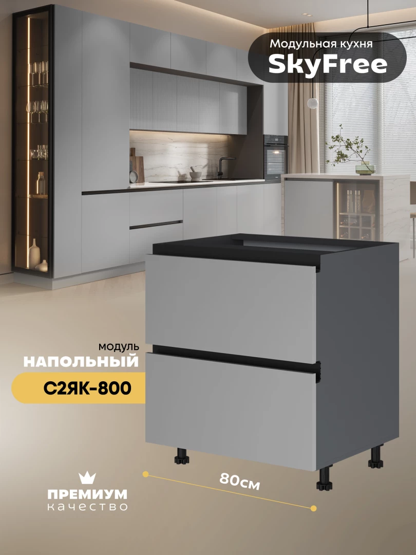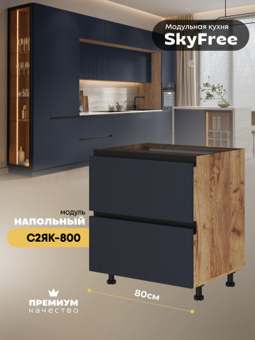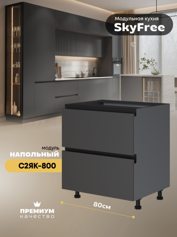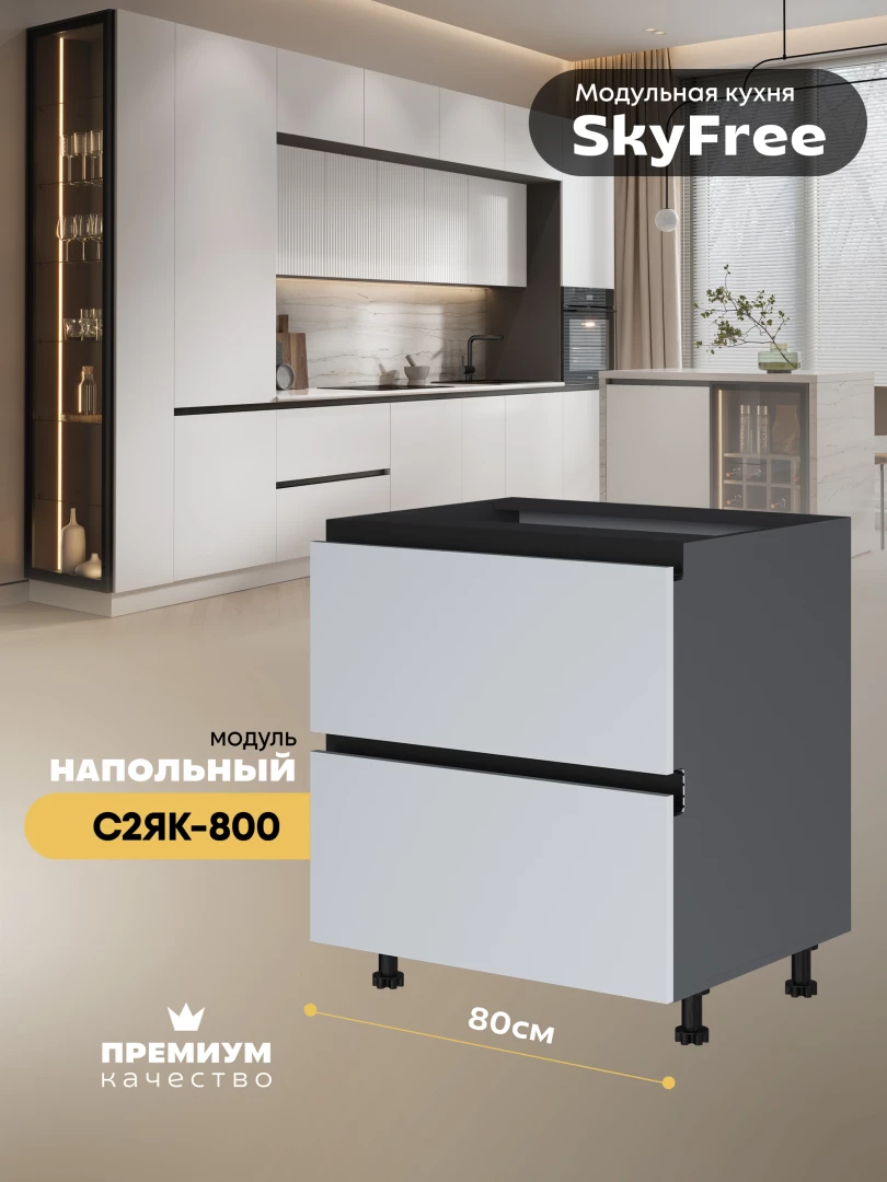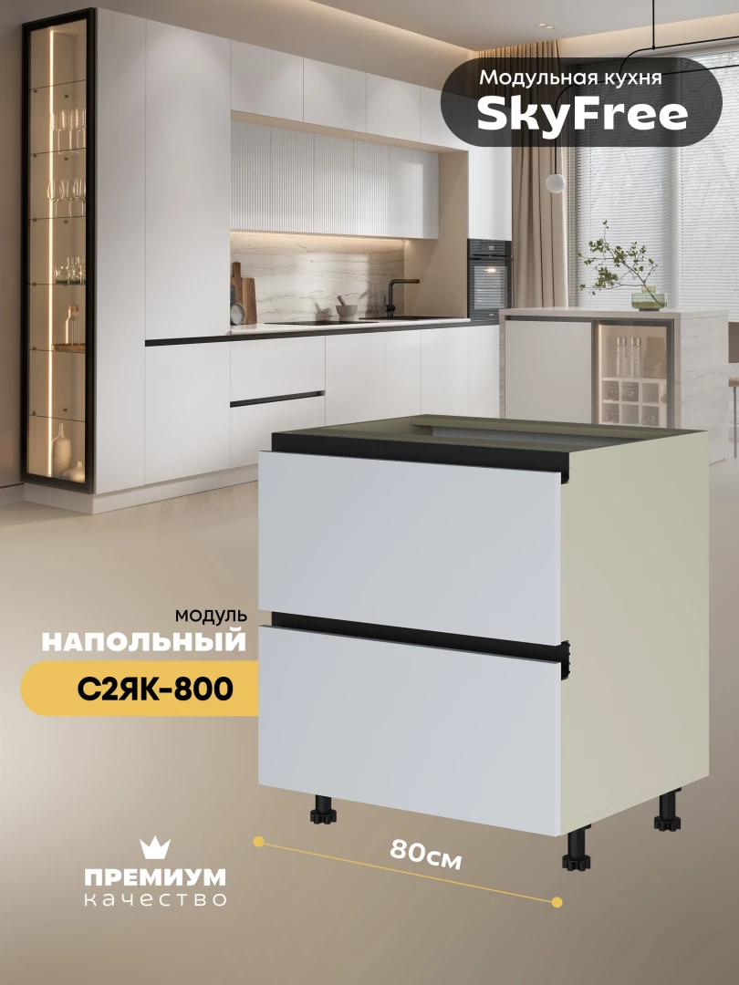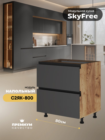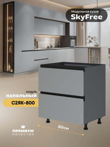 Кухонный напольный модуль с двумя выдвижными ящиками "СкайФри" С2ЯК-800 Матовый